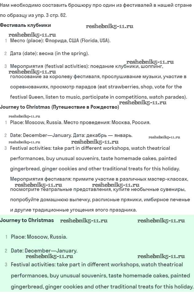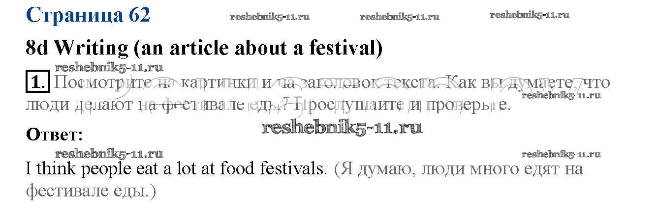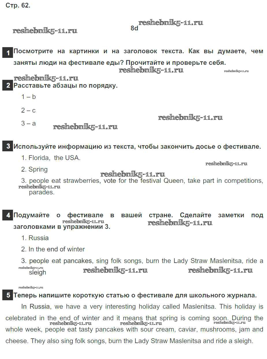 Готовая домашняя работа с ответами по Английскому языку за 5 класс Ваулина, Дули, Подоляко, Эванск Рабочая тетрадь Spotlight Просвещение 2016 ФГОС - Страницы 62