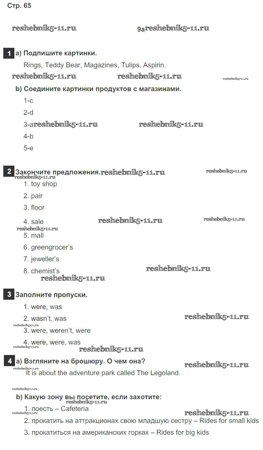 Готовая домашняя работа с ответами по Английскому языку за 5 класс Ваулина, Дули, Подоляко, Эванск Рабочая тетрадь Spotlight Просвещение 2016 ФГОС - Страницы 65