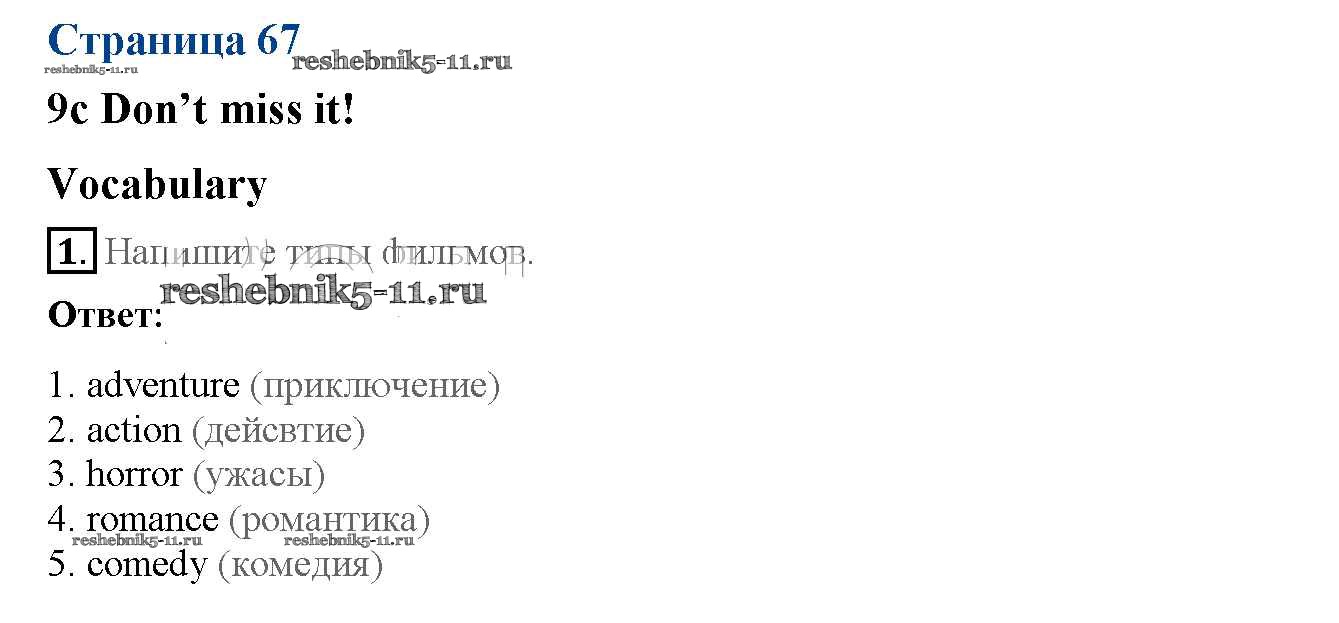 Готовая домашняя работа с ответами по Английскому языку за 5 класс Ваулина, Дули, Подоляко, Эванск Рабочая тетрадь Spotlight Просвещение 2016 ФГОС - Страницы 67