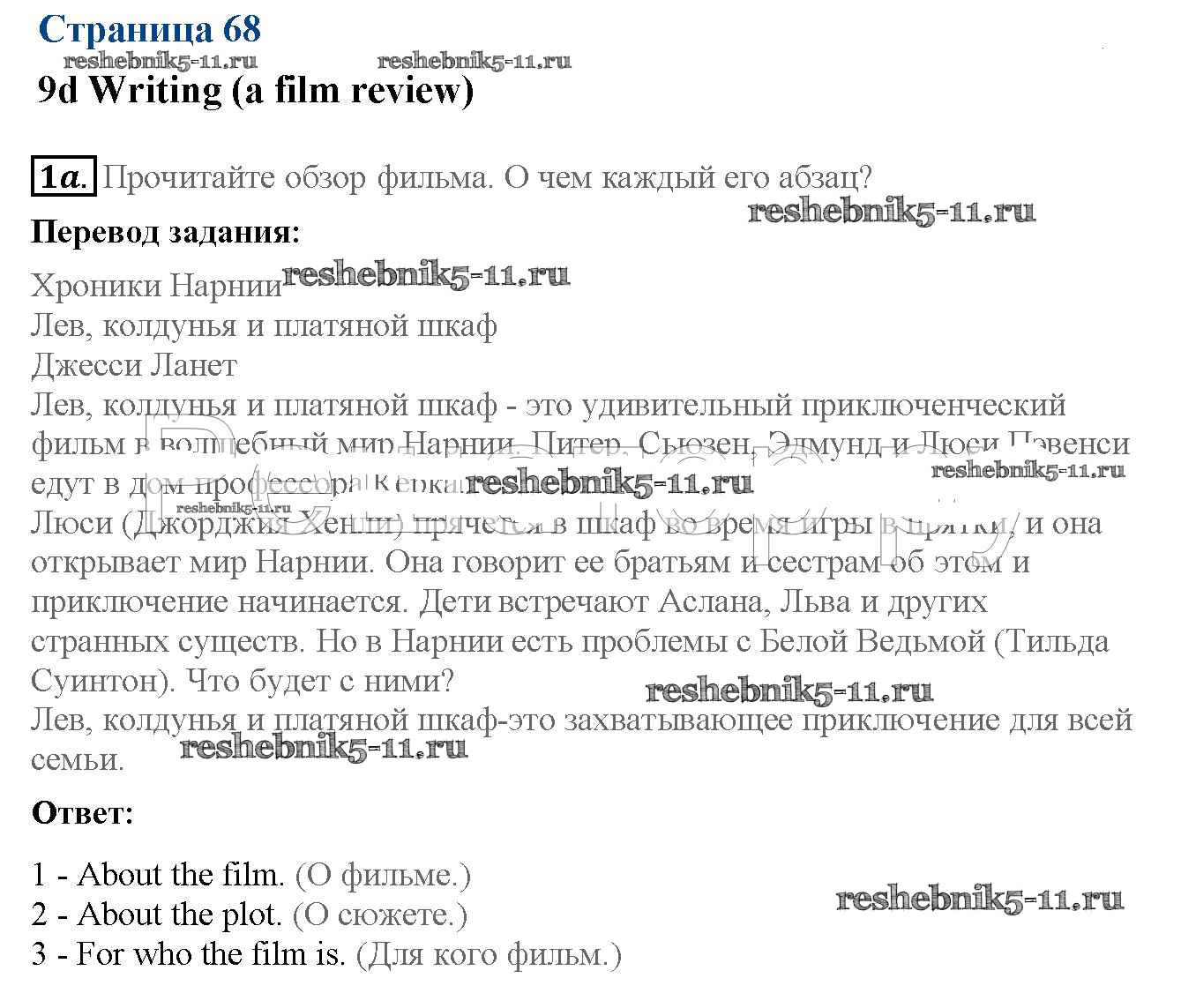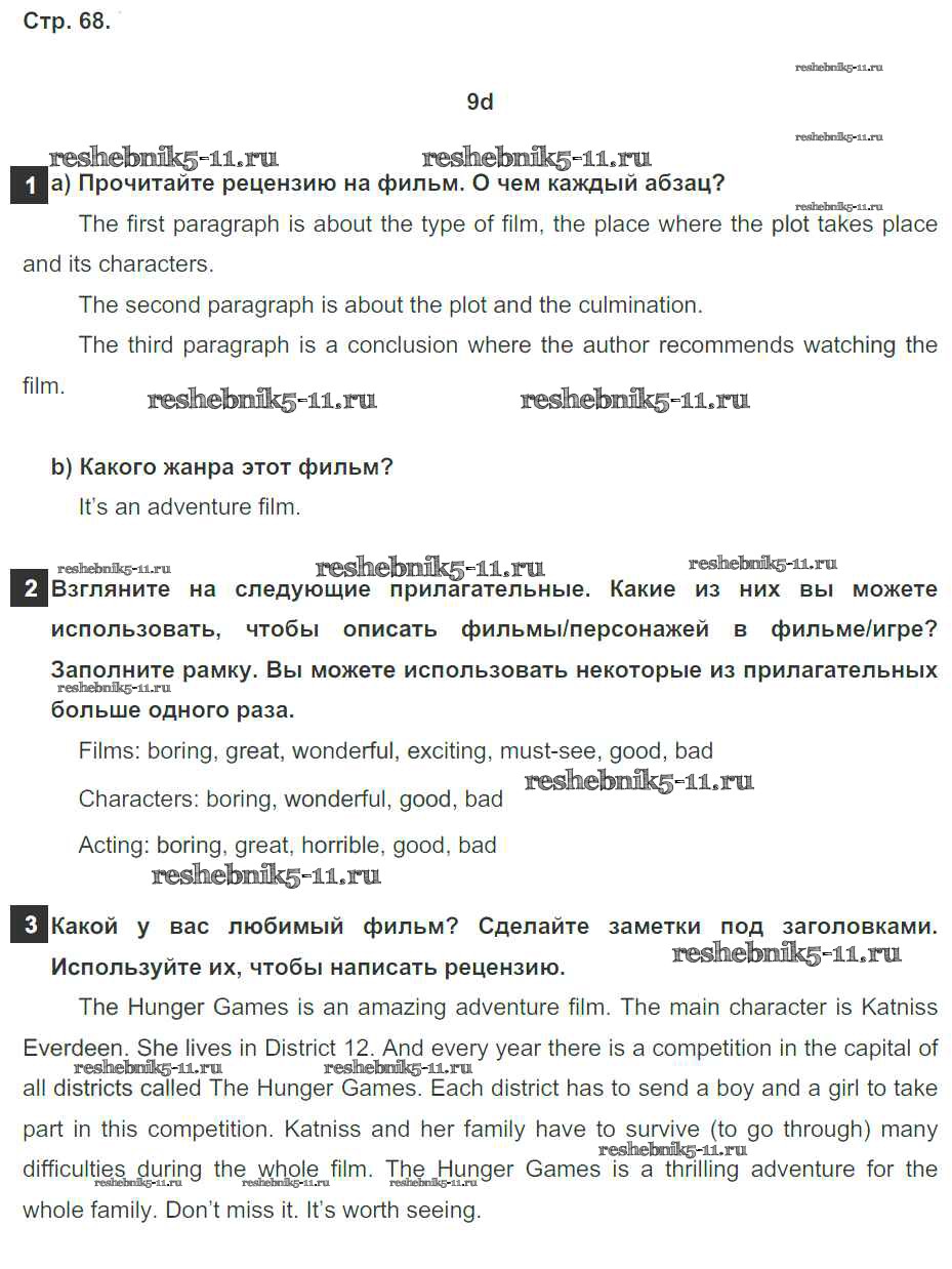 Готовая домашняя работа с ответами по Английскому языку за 5 класс Ваулина, Дули, Подоляко, Эванск Рабочая тетрадь Spotlight Просвещение 2016 ФГОС - Страницы 68