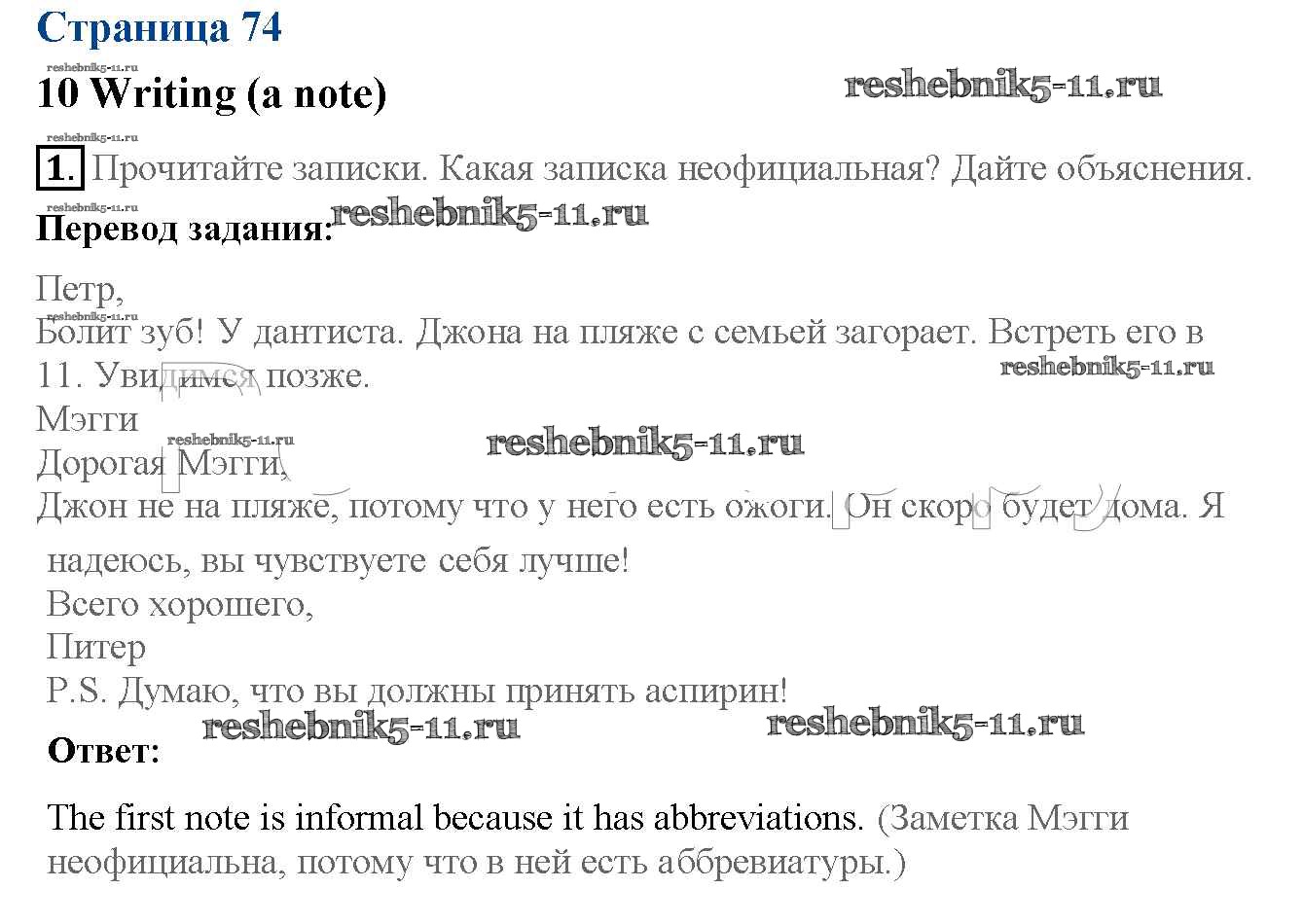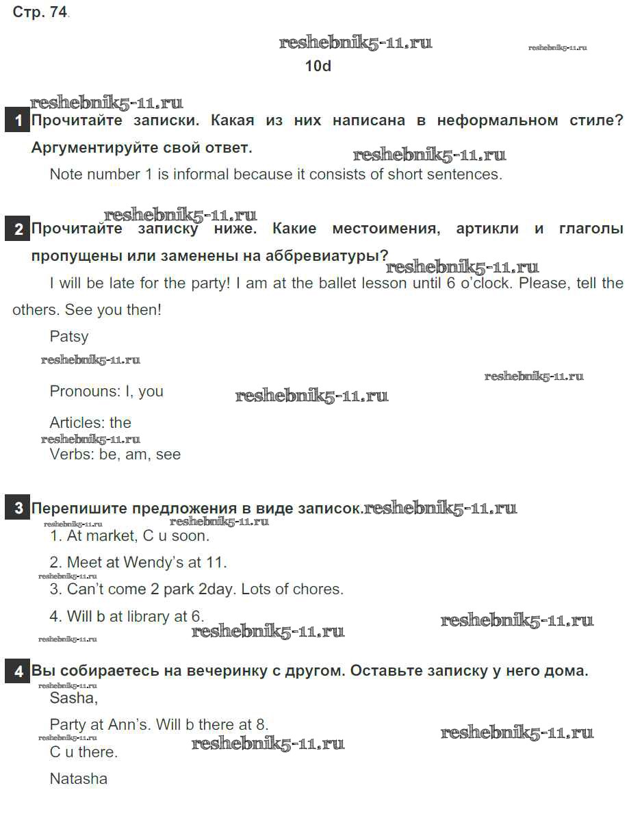 Готовая домашняя работа с ответами по Английскому языку за 5 класс Ваулина, Дули, Подоляко, Эванск Рабочая тетрадь Spotlight Просвещение 2016 ФГОС - Страницы 74