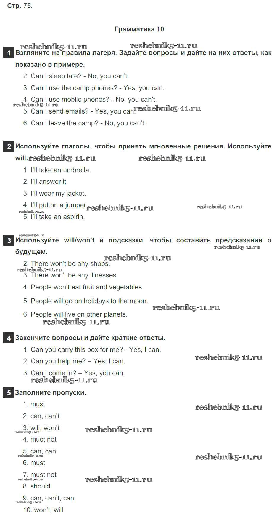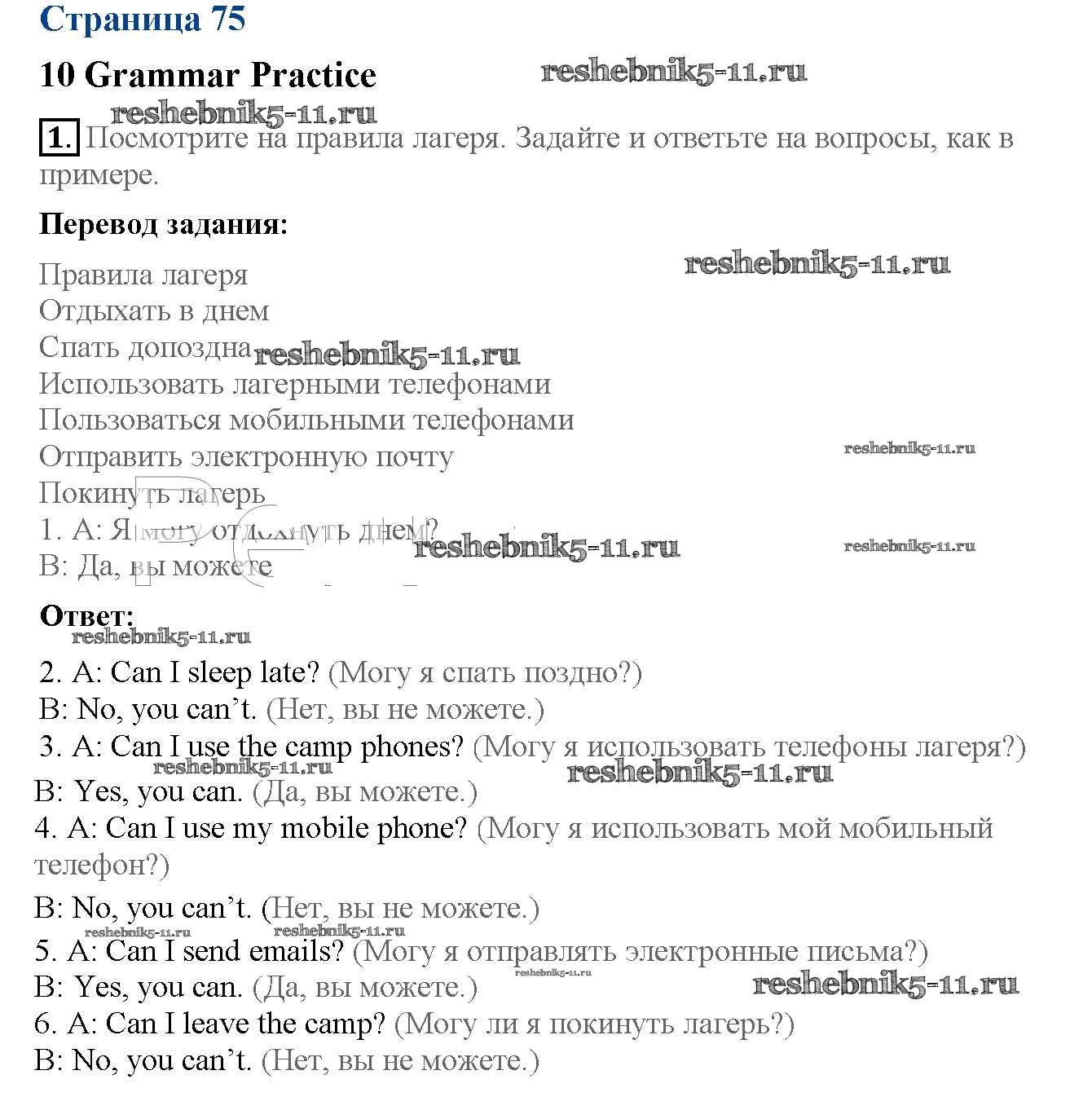 Готовая домашняя работа с ответами по Английскому языку за 5 класс Ваулина, Дули, Подоляко, Эванск Рабочая тетрадь Spotlight Просвещение 2016 ФГОС - Страницы 75