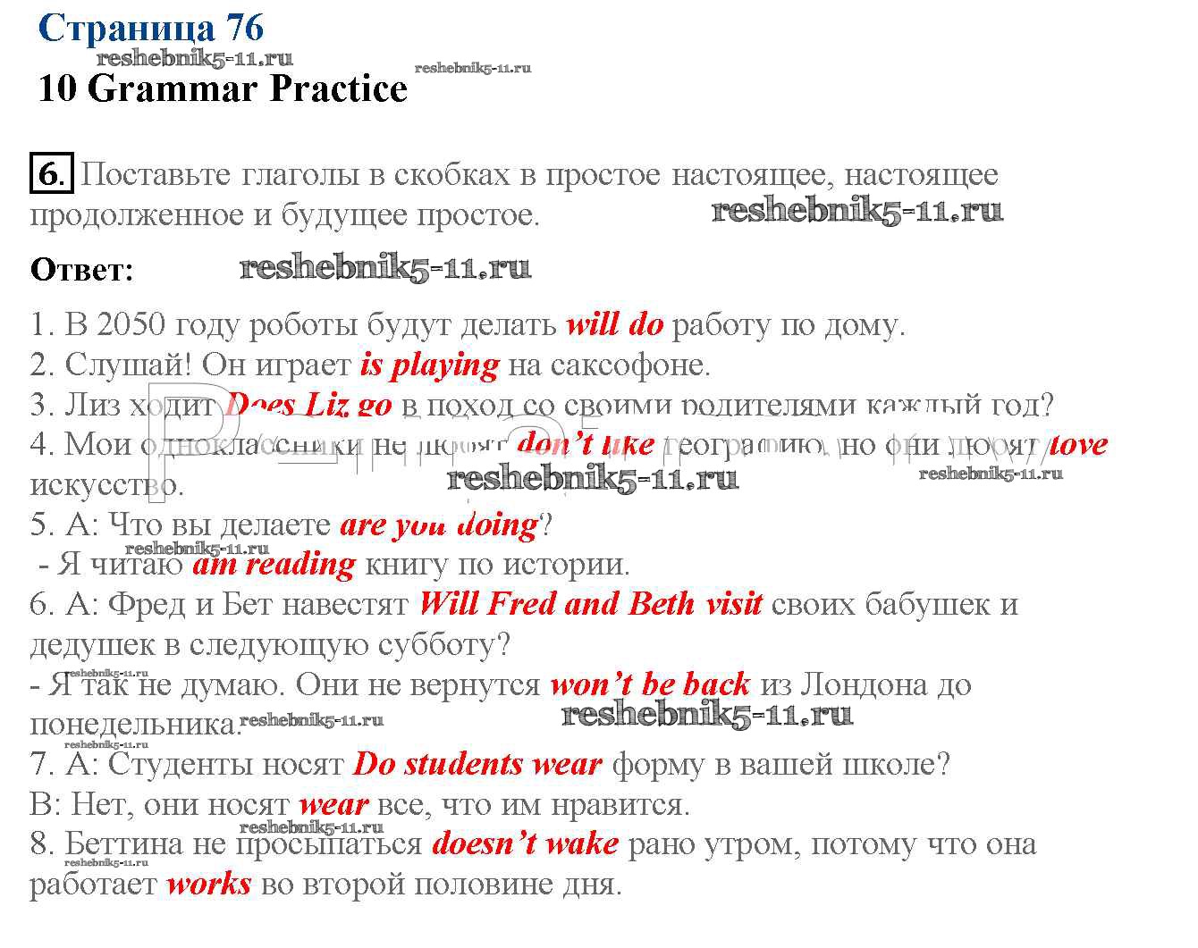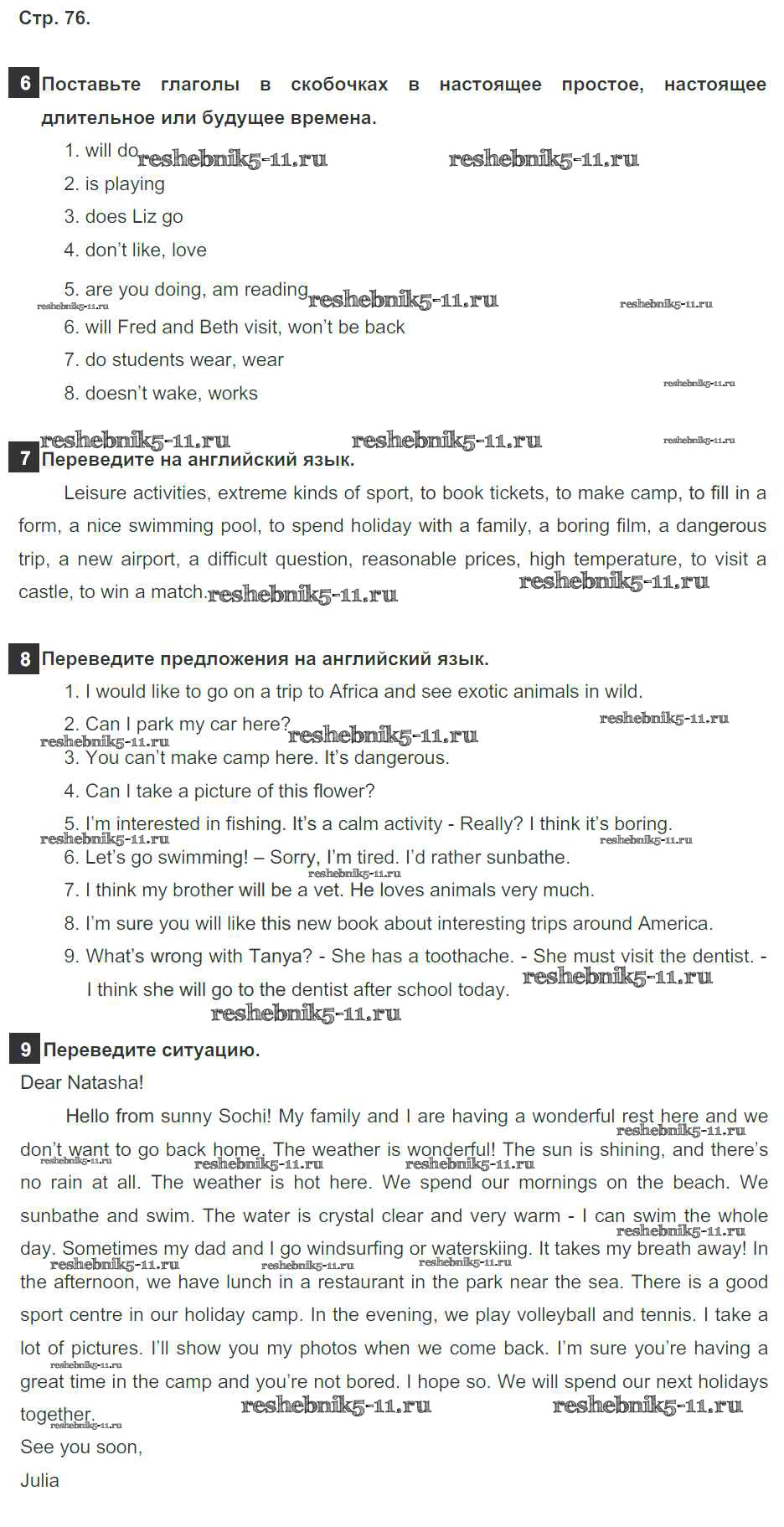 Готовая домашняя работа с ответами по Английскому языку за 5 класс Ваулина, Дули, Подоляко, Эванск Рабочая тетрадь Spotlight Просвещение 2016 ФГОС - Страницы 76