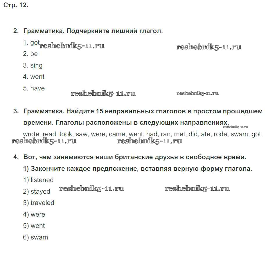 Готовая домашняя работа с ответами по Английскому языку за 5 класс Кузовлев, Лапа, Костина, Дуванова, Кузнецова Рабочая тетрадь Академический школьный учебник Просвещение 2013 ФГОС - Unit 1. Let's make friends! стр. 12