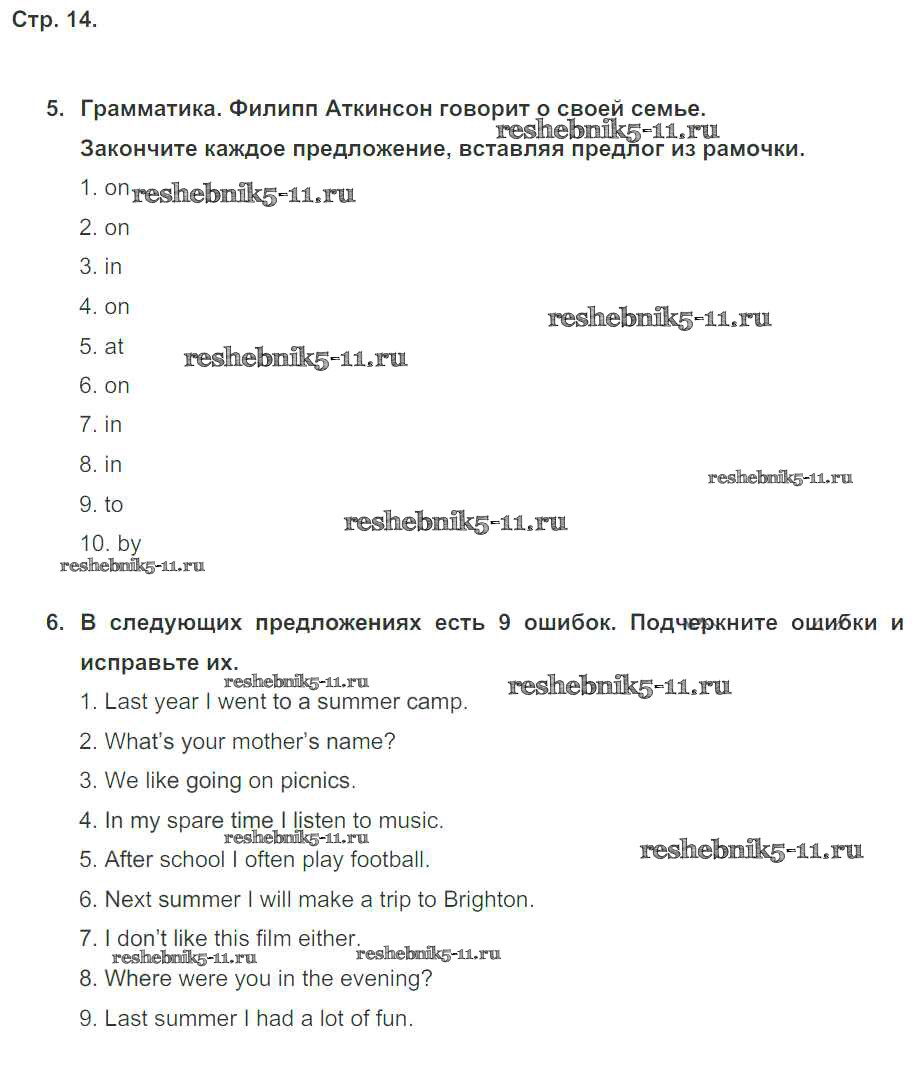 Английский язык за 5 класс Кузовлев Рабочая тетрадь Академический школьный учебник Просвещение unit 1 стр. 14