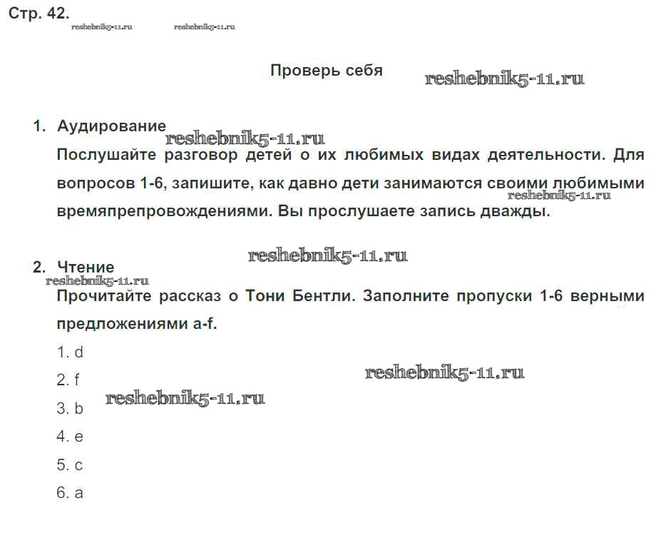 Готовая домашняя работа с ответами по Английскому языку за 5 класс Кузовлев, Лапа, Костина, Дуванова, Кузнецова Рабочая тетрадь Академический школьный учебник Просвещение 2013 ФГОС - Unit 3. We must help people around стр. 42