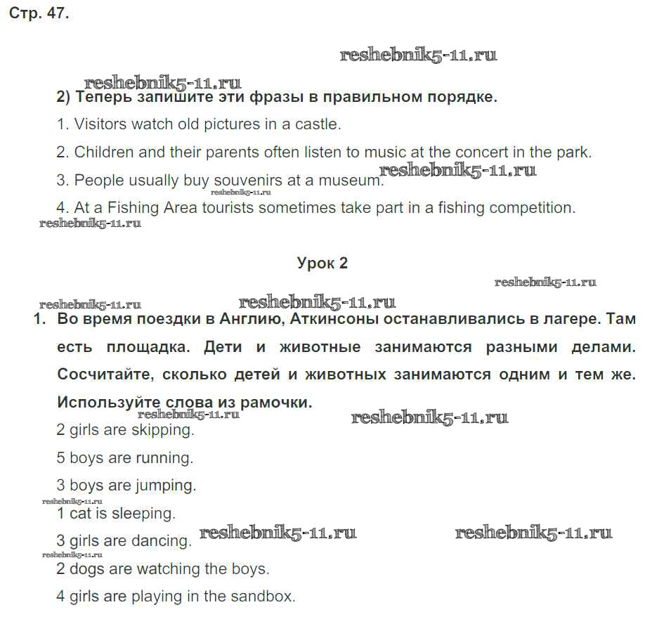 Готовая домашняя работа с ответами по Английскому языку за 5 класс Кузовлев, Лапа, Костина, Дуванова, Кузнецова Рабочая тетрадь Академический школьный учебник Просвещение 2013 ФГОС - Unit 4. Every day and at weekends стр. 47