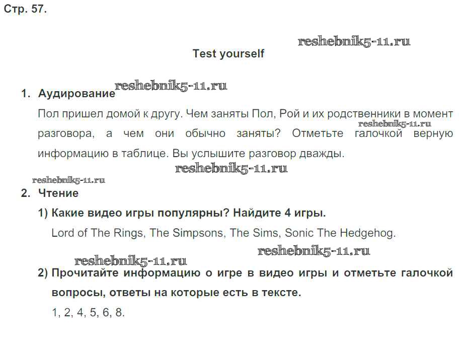 Готовая домашняя работа с ответами по Английскому языку за 5 класс Кузовлев, Лапа, Костина, Дуванова, Кузнецова Рабочая тетрадь Академический школьный учебник Просвещение 2013 ФГОС - Unit 4. Every day and at weekends стр. 57