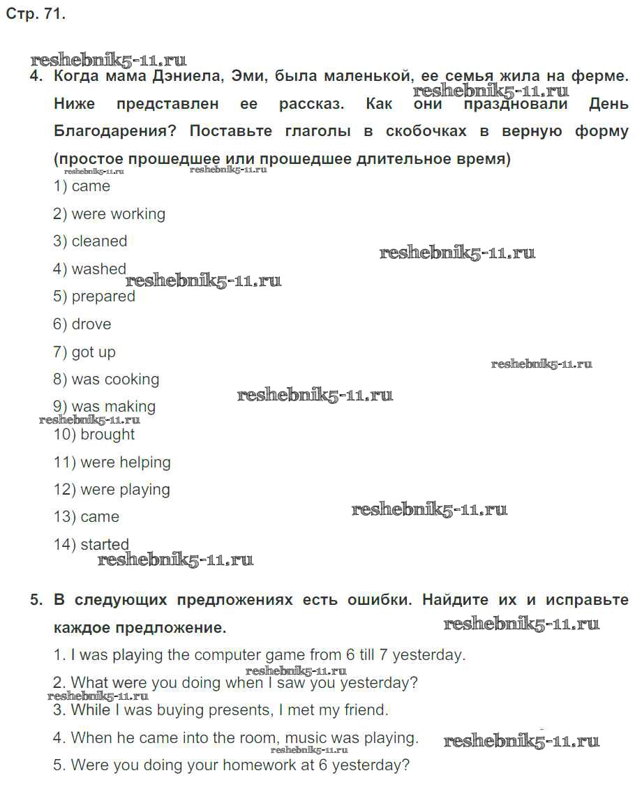 Английский язык за 5 класс Кузовлев Рабочая тетрадь Академический школьный учебник Просвещение unit 5 стр. 71