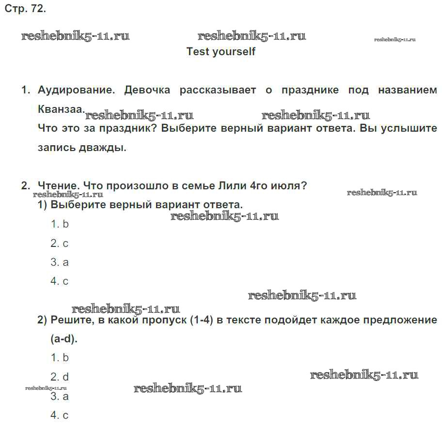 Готовая домашняя работа с ответами по Английскому языку за 5 класс Кузовлев, Лапа, Костина, Дуванова, Кузнецова Рабочая тетрадь Академический школьный учебник Просвещение 2013 ФГОС - Unit 5. My favorite celebrations стр. 72
