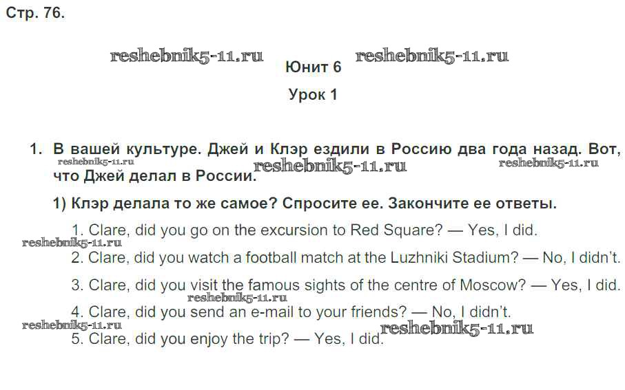 Английский язык за 5 класс Кузовлев Рабочая тетрадь Академический школьный учебник Просвещение unit 6 стр. 76