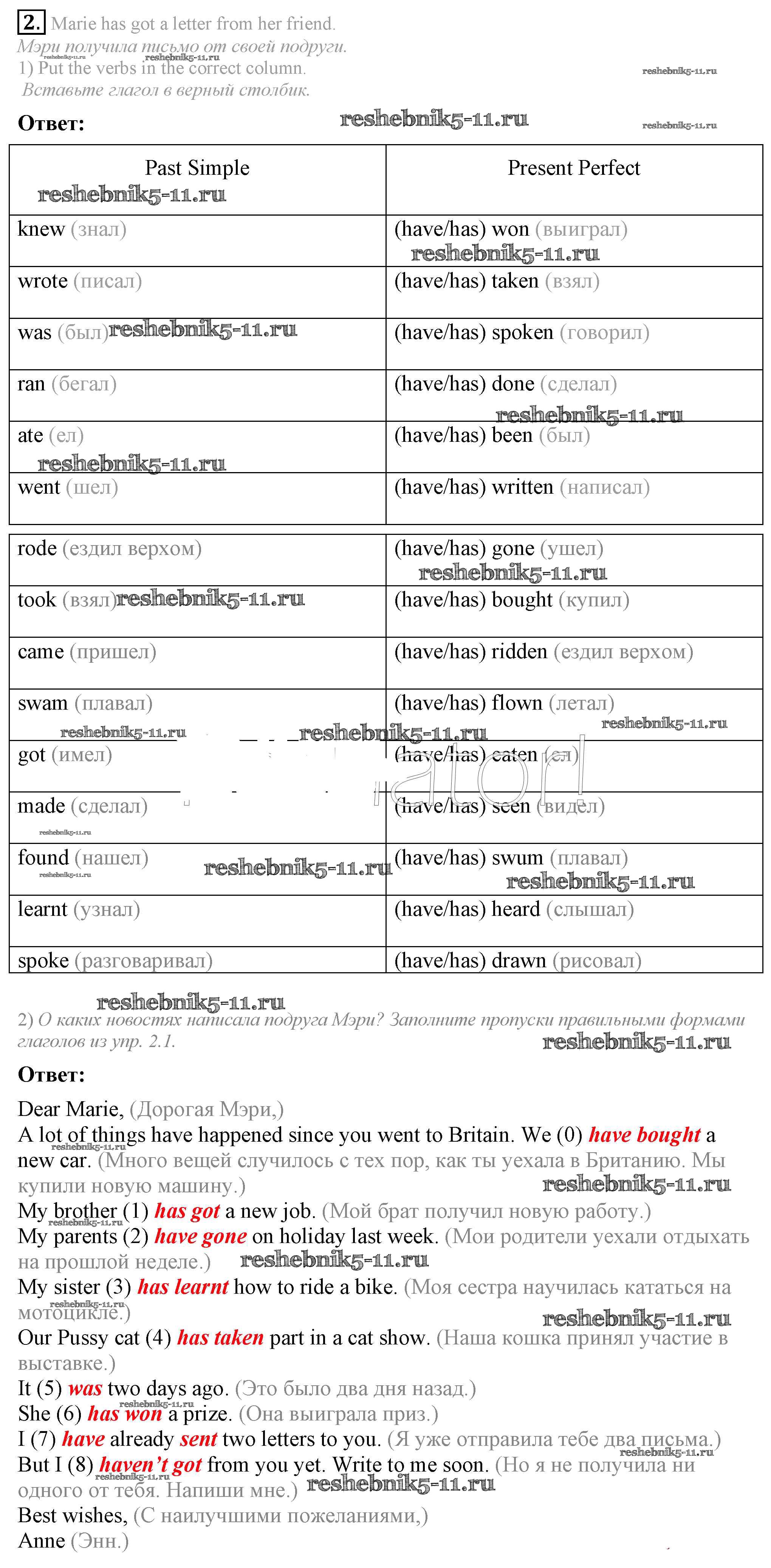 Готовая домашняя работа с ответами по Английскому языку за 5 класс Кузовлев, Лапа, Костина, Дуванова, Кузнецова Рабочая тетрадь Академический школьный учебник Просвещение 2013 ФГОС - Unit 6. We've had a nice trip to England стр. 82