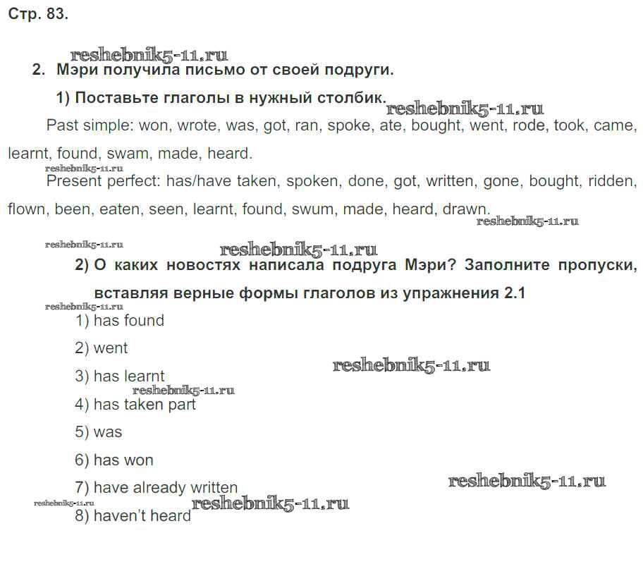 Готовая домашняя работа с ответами по Английскому языку за 5 класс Кузовлев, Лапа, Костина, Дуванова, Кузнецова Рабочая тетрадь Академический школьный учебник Просвещение 2013 ФГОС - Unit 6. We've had a nice trip to England стр. 83
