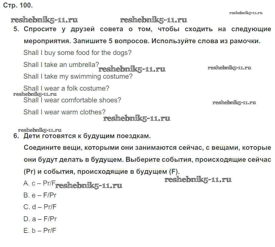 Готовая домашняя работа с ответами по Английскому языку за 5 класс Кузовлев, Лапа, Костина, Дуванова, Кузнецова Рабочая тетрадь Академический школьный учебник Просвещение 2013 ФГОС - Unit 7. My future holiday стр. 100