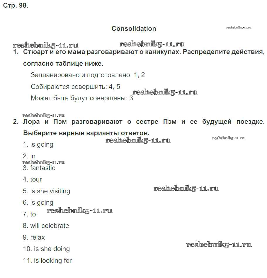 Готовая домашняя работа с ответами по Английскому языку за 5 класс Кузовлев, Лапа, Костина, Дуванова, Кузнецова Рабочая тетрадь Академический школьный учебник Просвещение 2013 ФГОС - Unit 7. My future holiday стр. 98