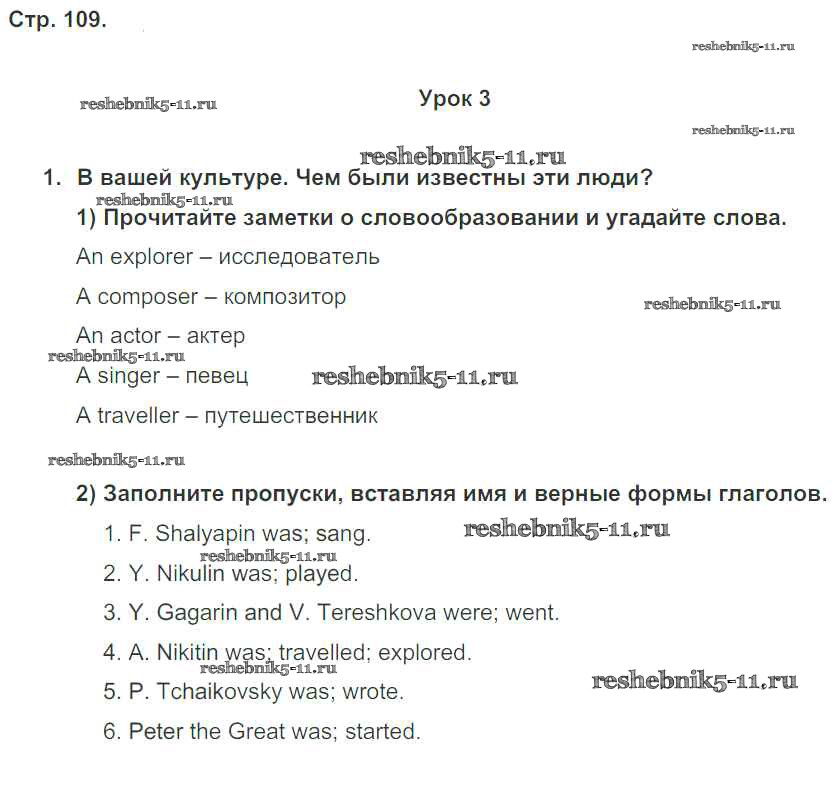 Готовая домашняя работа с ответами по Английскому языку за 5 класс Кузовлев, Лапа, Костина, Дуванова, Кузнецова Рабочая тетрадь Академический школьный учебник Просвещение 2013 ФГОС - Unit 8. My best impressions стр. 109