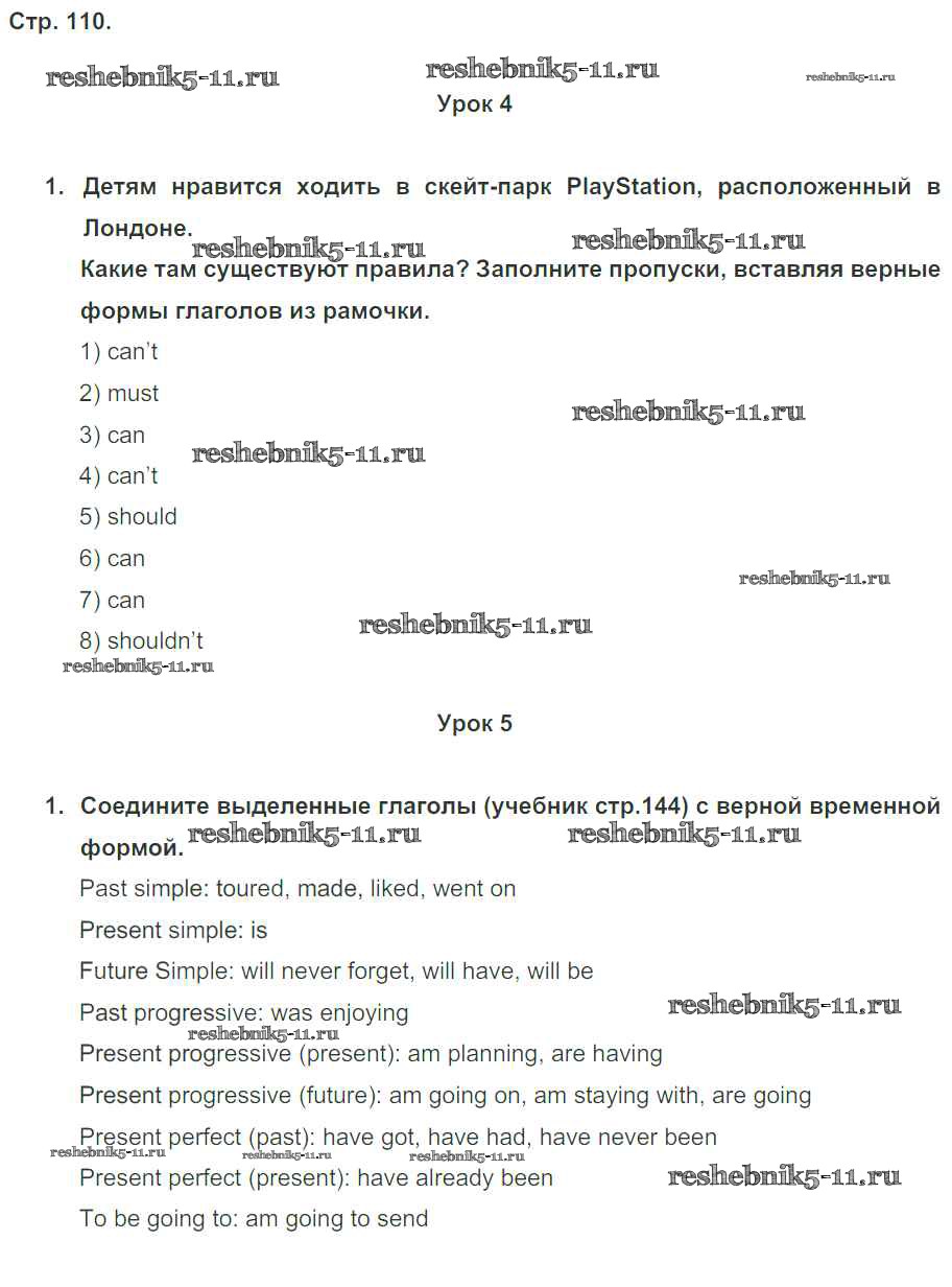 Английский язык за 5 класс Кузовлев Рабочая тетрадь Академический школьный учебник Просвещение unit 8 стр. 110