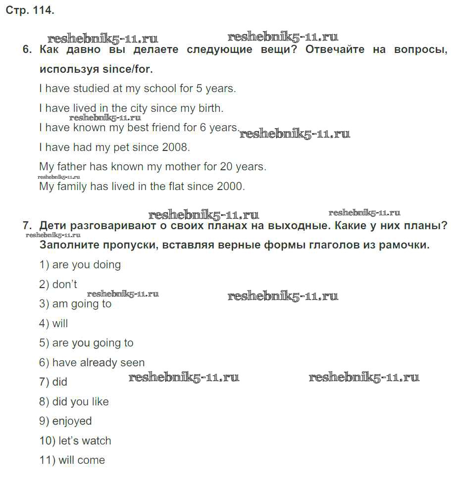 Готовая домашняя работа с ответами по Английскому языку за 5 класс Кузовлев, Лапа, Костина, Дуванова, Кузнецова Рабочая тетрадь Академический школьный учебник Просвещение 2013 ФГОС - Unit 8. My best impressions стр. 114