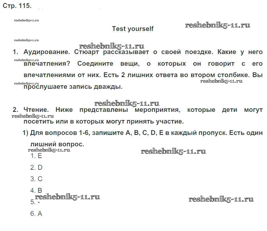 Готовая домашняя работа с ответами по Английскому языку за 5 класс Кузовлев, Лапа, Костина, Дуванова, Кузнецова Рабочая тетрадь Академический школьный учебник Просвещение 2013 ФГОС - Unit 8. My best impressions стр. 115