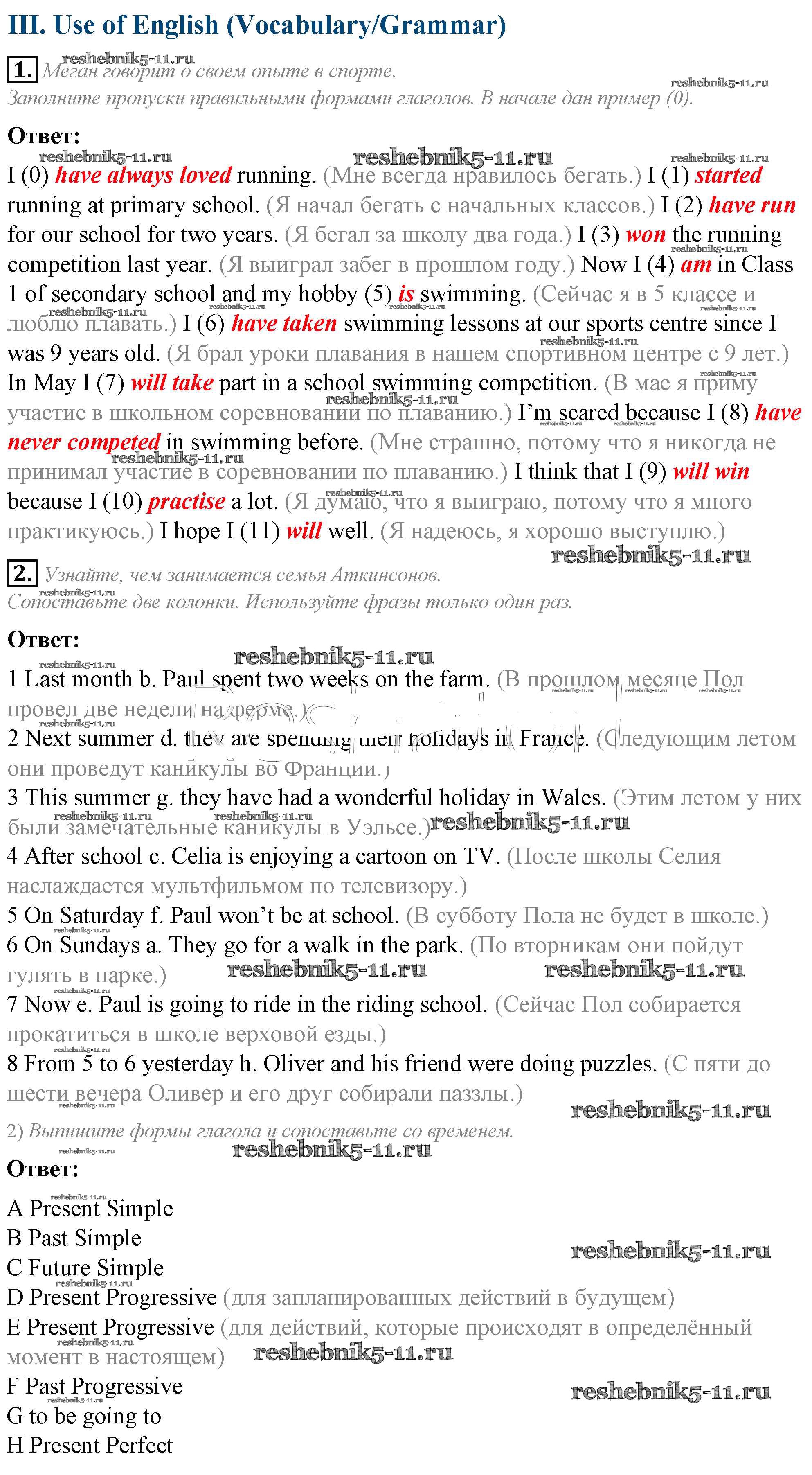 Английский язык за 5 класс Кузовлев Рабочая тетрадь Академический школьный учебник Просвещение unit 8 стр. 115