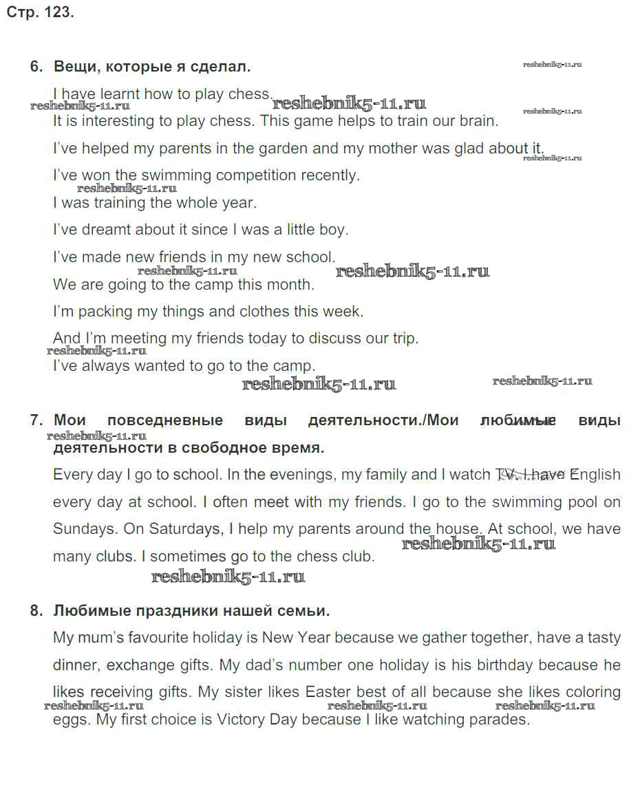 Готовая домашняя работа с ответами по Английскому языку за 5 класс Кузовлев, Лапа, Костина, Дуванова, Кузнецова Рабочая тетрадь Академический школьный учебник Просвещение 2013 ФГОС - Unit 8. My best impressions стр. 123