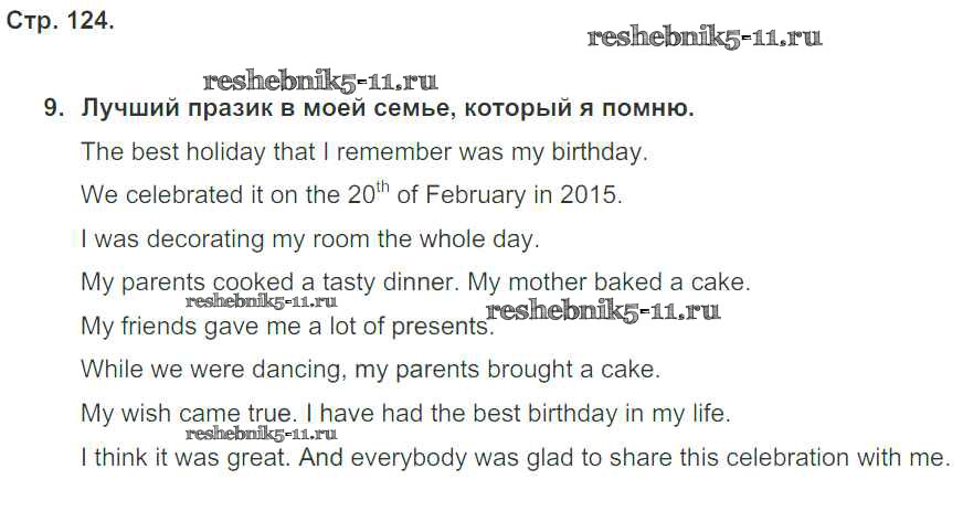 Готовая домашняя работа с ответами по Английскому языку за 5 класс Кузовлев, Лапа, Костина, Дуванова, Кузнецова Рабочая тетрадь Академический школьный учебник Просвещение 2013 ФГОС - Unit 8. My best impressions стр. 124
