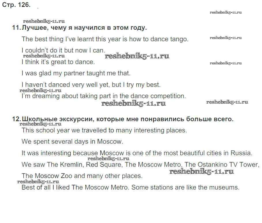 Готовая домашняя работа с ответами по Английскому языку за 5 класс Кузовлев, Лапа, Костина, Дуванова, Кузнецова Рабочая тетрадь Академический школьный учебник Просвещение 2013 ФГОС - Unit 8. My best impressions стр. 126