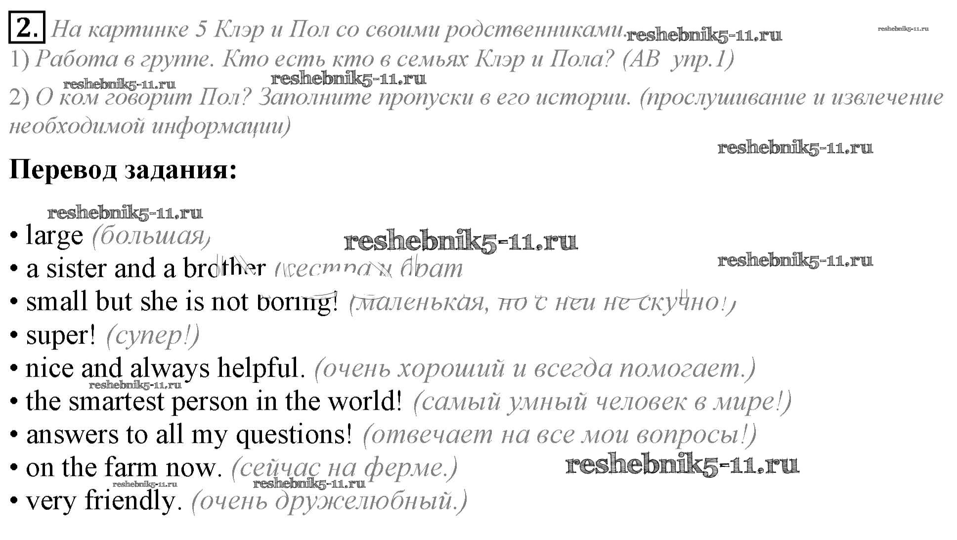 Готовая домашняя работа с ответами по Английскому языку за 5 класс Кузовлев, Лапа, Костина, Дуванова, Кузнецова Учебник УМК Просвещение 2015 ФГОС - Lesson 1. Hello! I’m Clare. What’s your name? 2