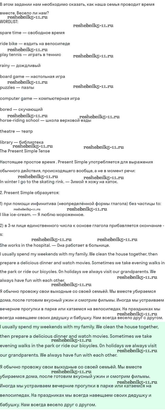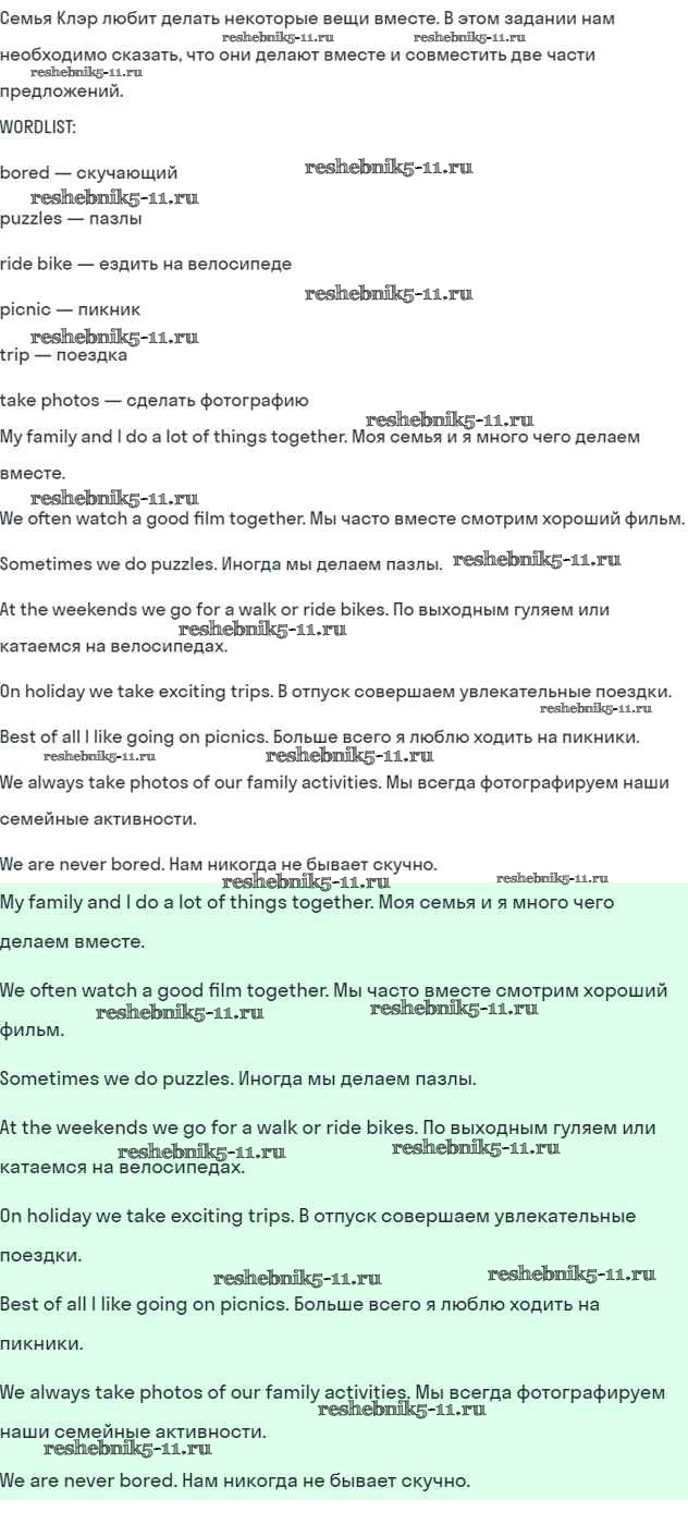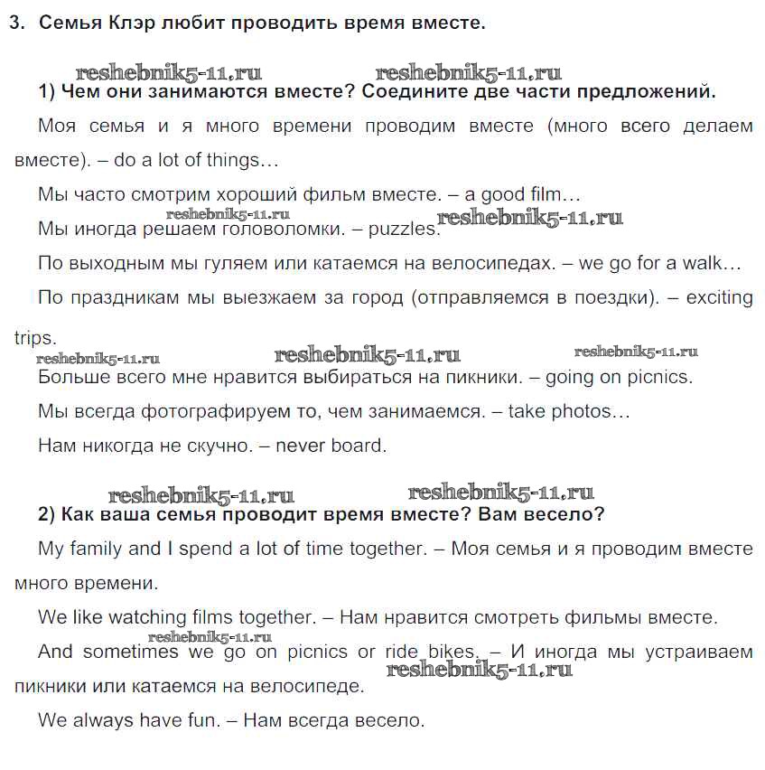 Готовая домашняя работа с ответами по Английскому языку за 5 класс Кузовлев, Лапа, Костина, Дуванова, Кузнецова Учебник УМК Просвещение 2015 ФГОС - Lesson 2. What do you do in your spare time? 3