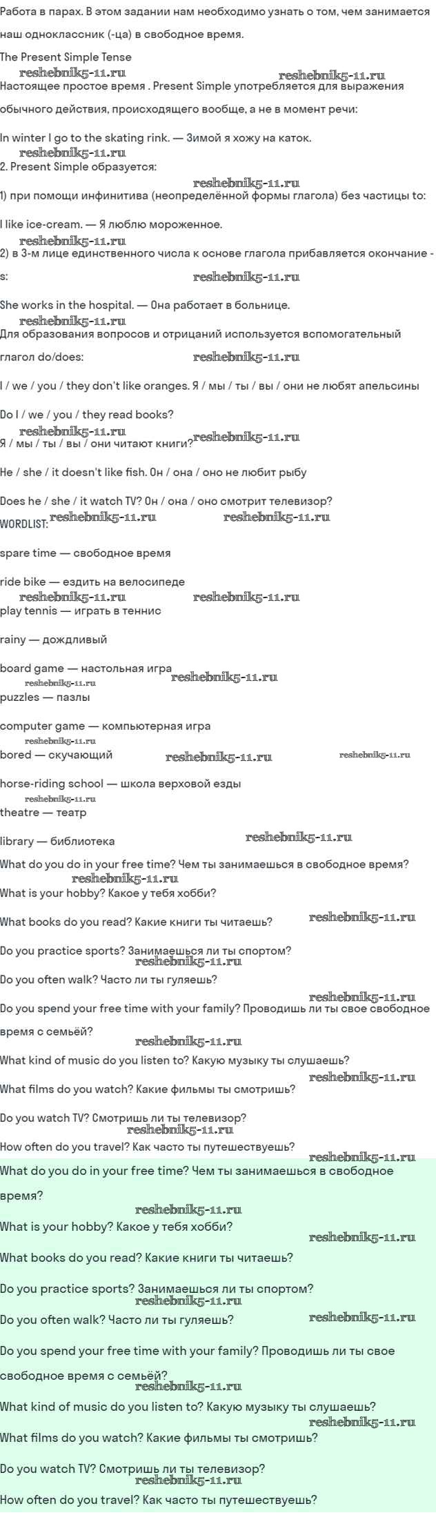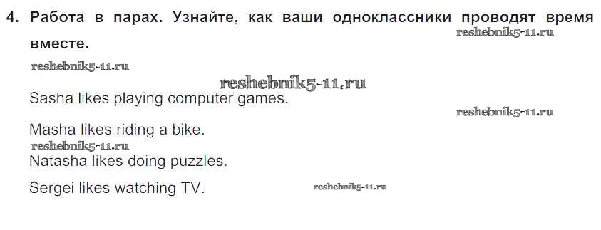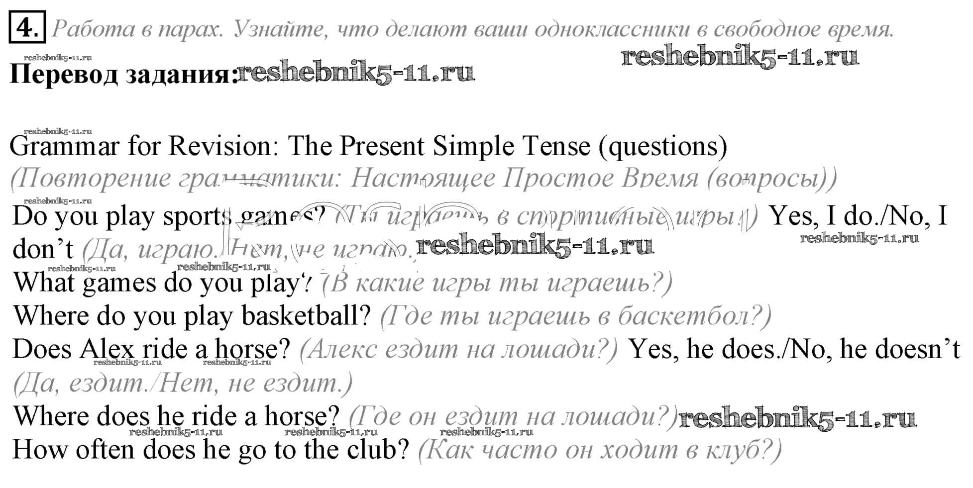 Готовая домашняя работа с ответами по Английскому языку за 5 класс Кузовлев, Лапа, Костина, Дуванова, Кузнецова Учебник УМК Просвещение 2015 ФГОС - Lesson 2. What do you do in your spare time? 4