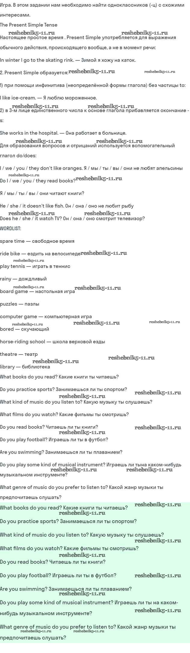 Готовая домашняя работа с ответами по Английскому языку за 5 класс Кузовлев, Лапа, Костина, Дуванова, Кузнецова Учебник УМК Просвещение 2015 ФГОС - Lesson 2. What do you do in your spare time? 5