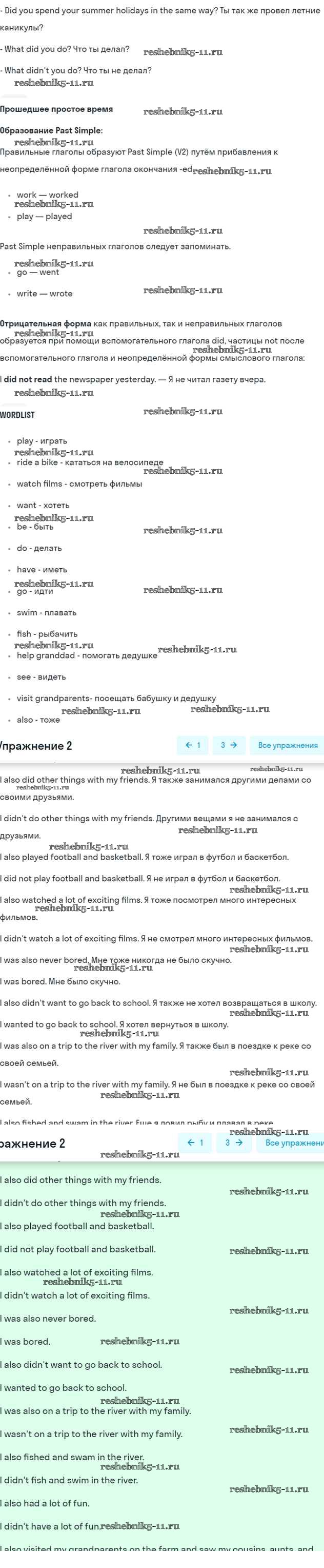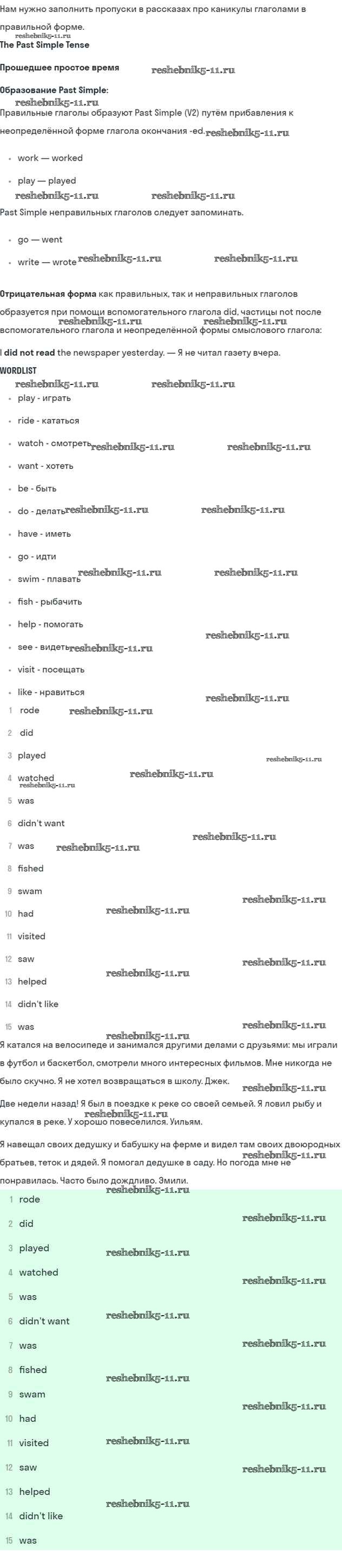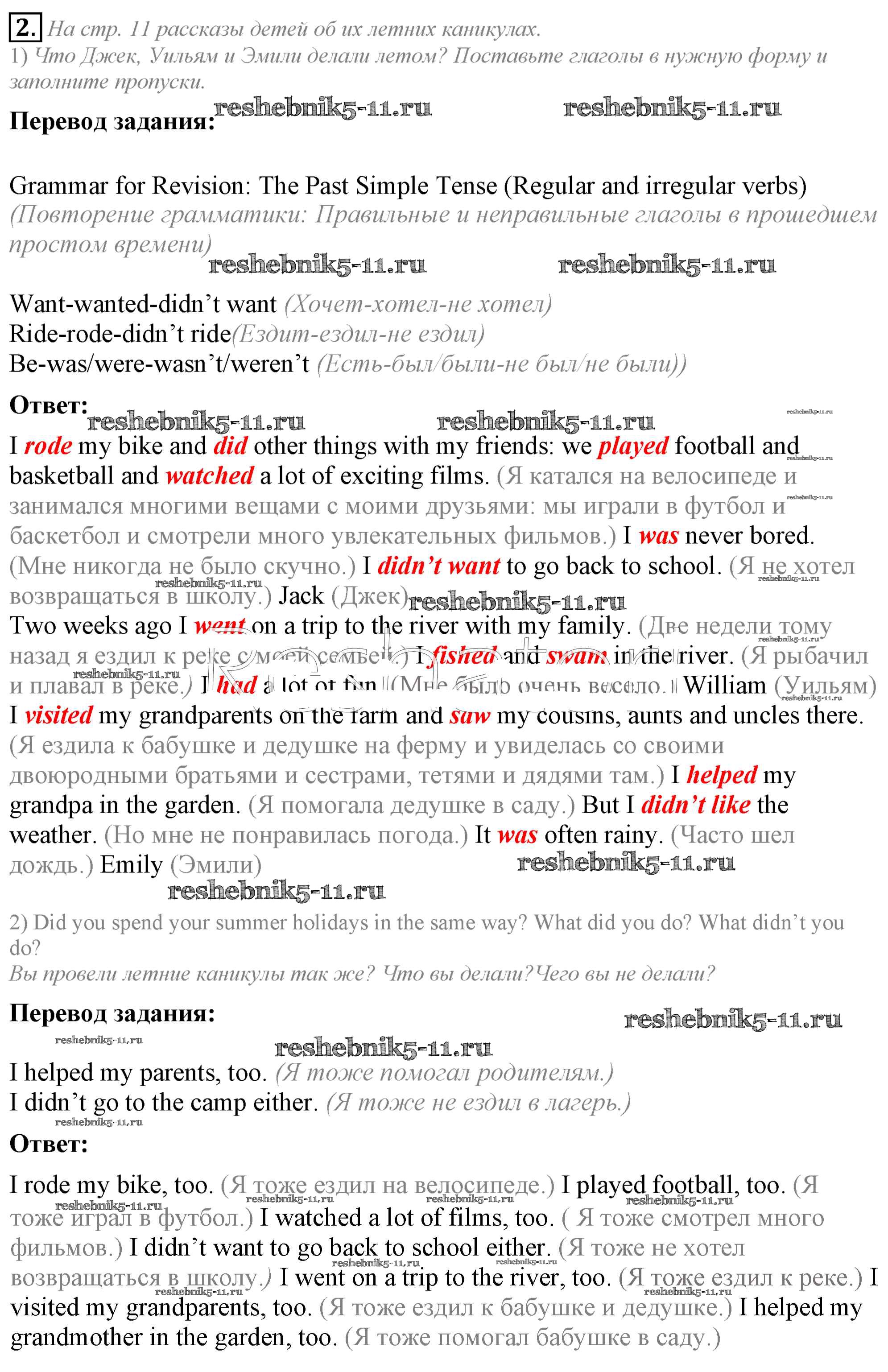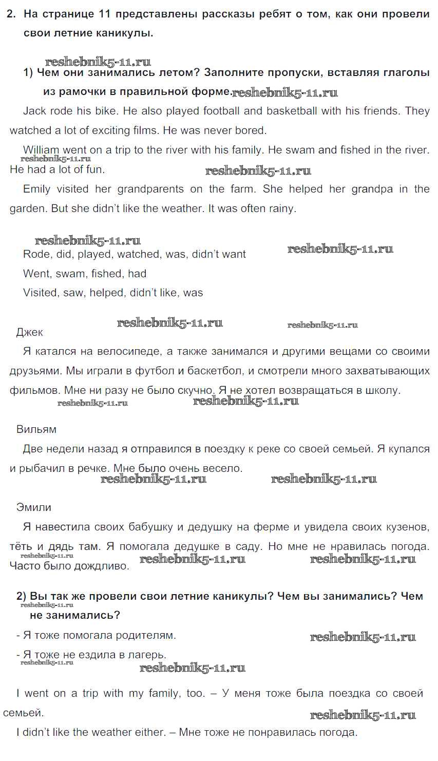 Готовая домашняя работа с ответами по Английскому языку за 5 класс Кузовлев, Лапа, Костина, Дуванова, Кузнецова Учебник УМК Просвещение 2015 ФГОС - Lesson 3. How I spent my summer holidays 2
