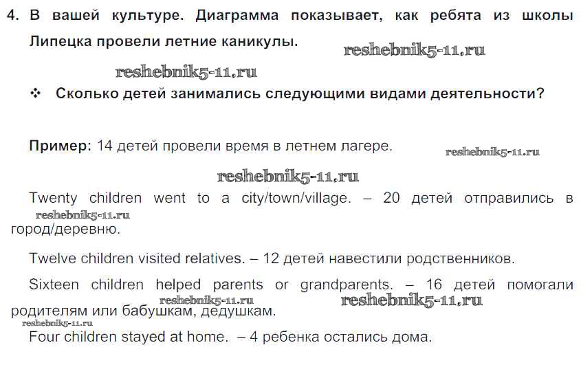 Готовая домашняя работа с ответами по Английскому языку за 5 класс Кузовлев, Лапа, Костина, Дуванова, Кузнецова Учебник УМК Просвещение 2015 ФГОС - Lesson 3. How I spent my summer holidays 4