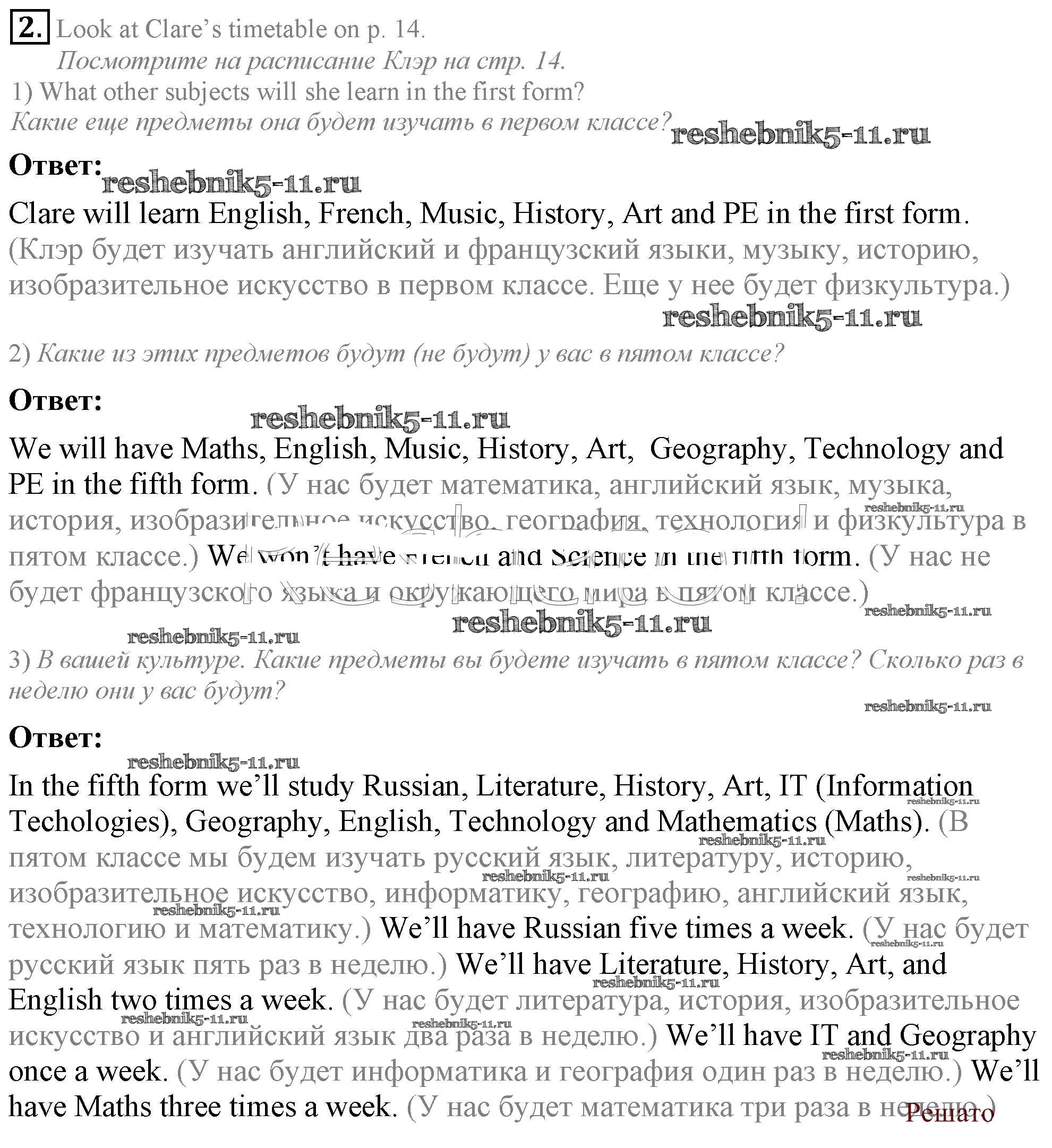 Готовая домашняя работа с ответами по Английскому языку за 5 класс Кузовлев, Лапа, Костина, Дуванова, Кузнецова Учебник УМК Просвещение 2015 ФГОС - Lesson 4. Welcome to my school! 2