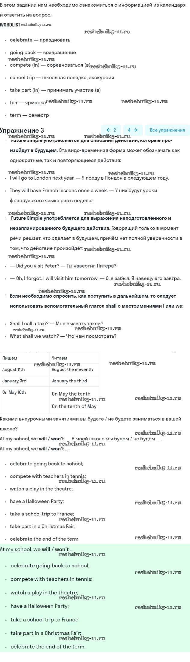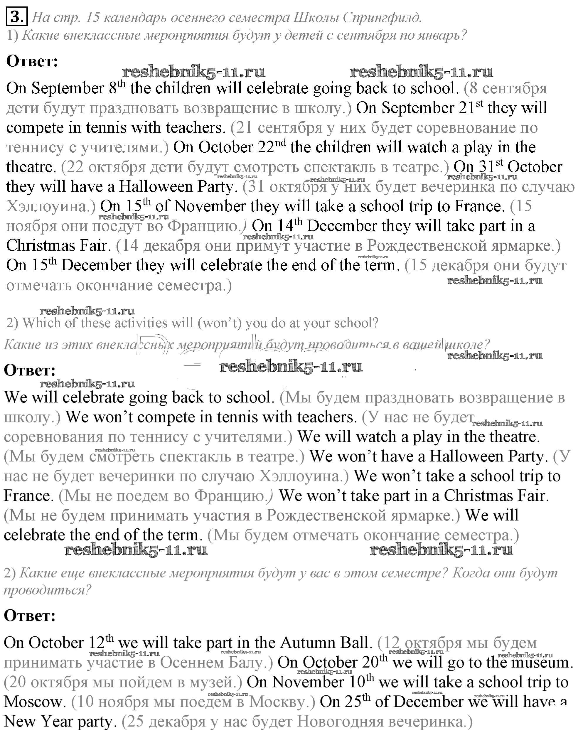 Готовая домашняя работа с ответами по Английскому языку за 5 класс Кузовлев, Лапа, Костина, Дуванова, Кузнецова Учебник УМК Просвещение 2015 ФГОС - Lesson 4. Welcome to my school! 3