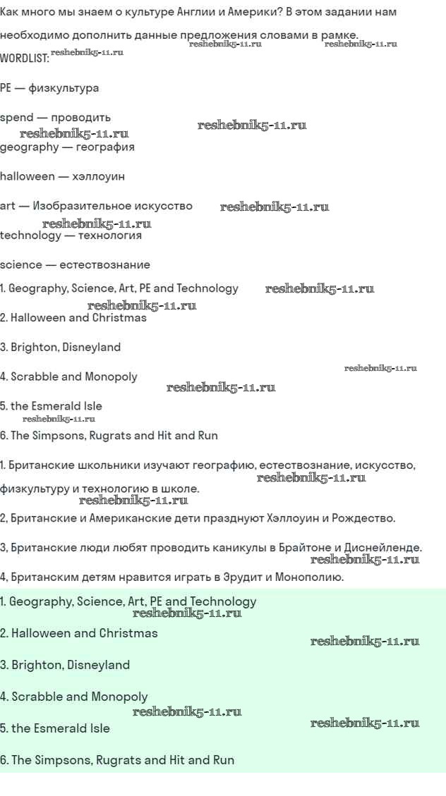 Готовая домашняя работа с ответами по Английскому языку за 5 класс Кузовлев, Лапа, Костина, Дуванова, Кузнецова Учебник УМК Просвещение 2015 ФГОС - Lesson 7-8. Test yourself 2