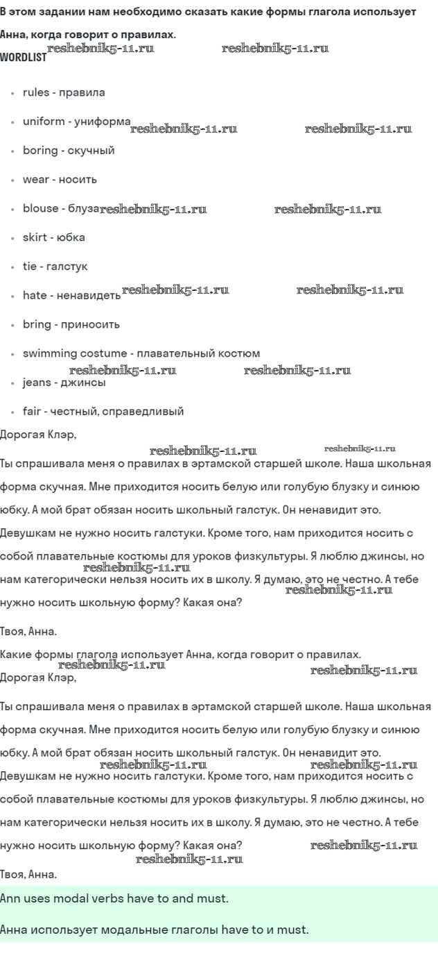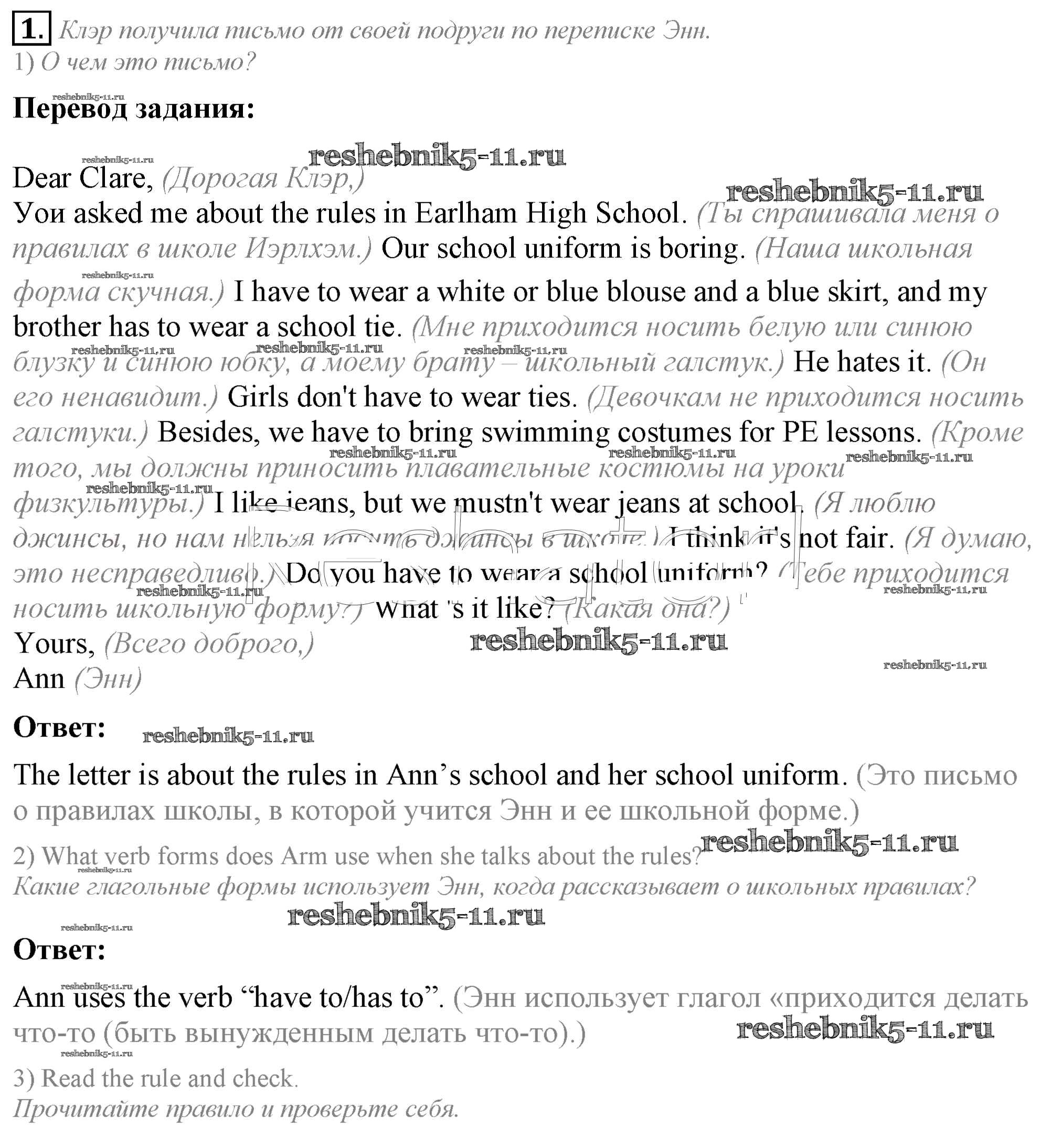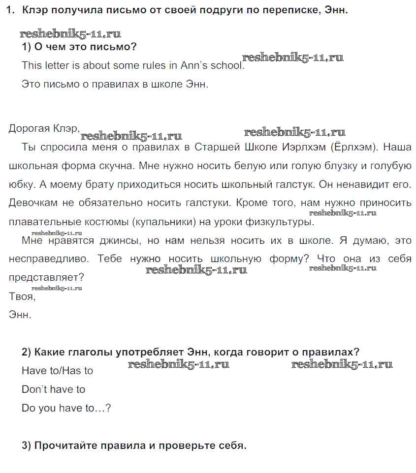 Готовая домашняя работа с ответами по Английскому языку за 5 класс Кузовлев, Лапа, Костина, Дуванова, Кузнецова Учебник УМК Просвещение 2015 ФГОС - Lesson 2. Do you have to do it? 1