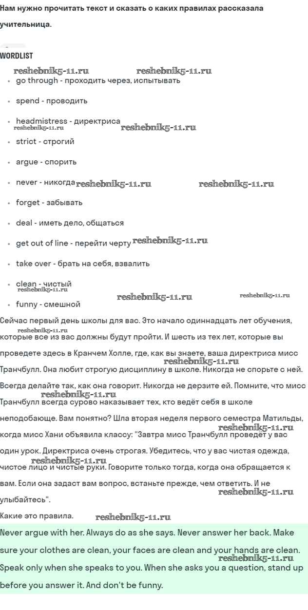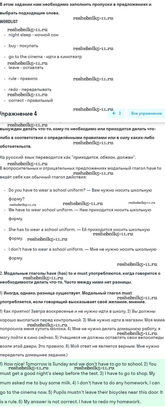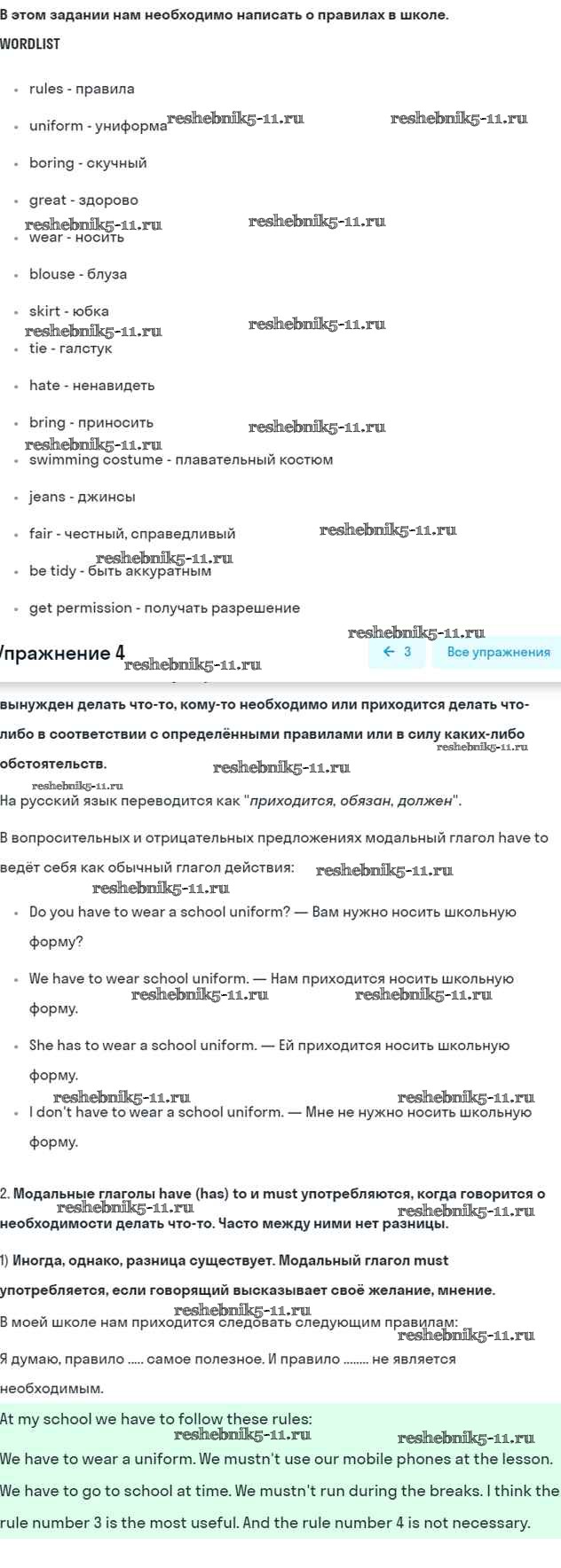 Готовая домашняя работа с ответами по Английскому языку за 5 класс Кузовлев, Лапа, Костина, Дуванова, Кузнецова Учебник УМК Просвещение 2015 ФГОС - Lesson 2. Do you have to do it? 4