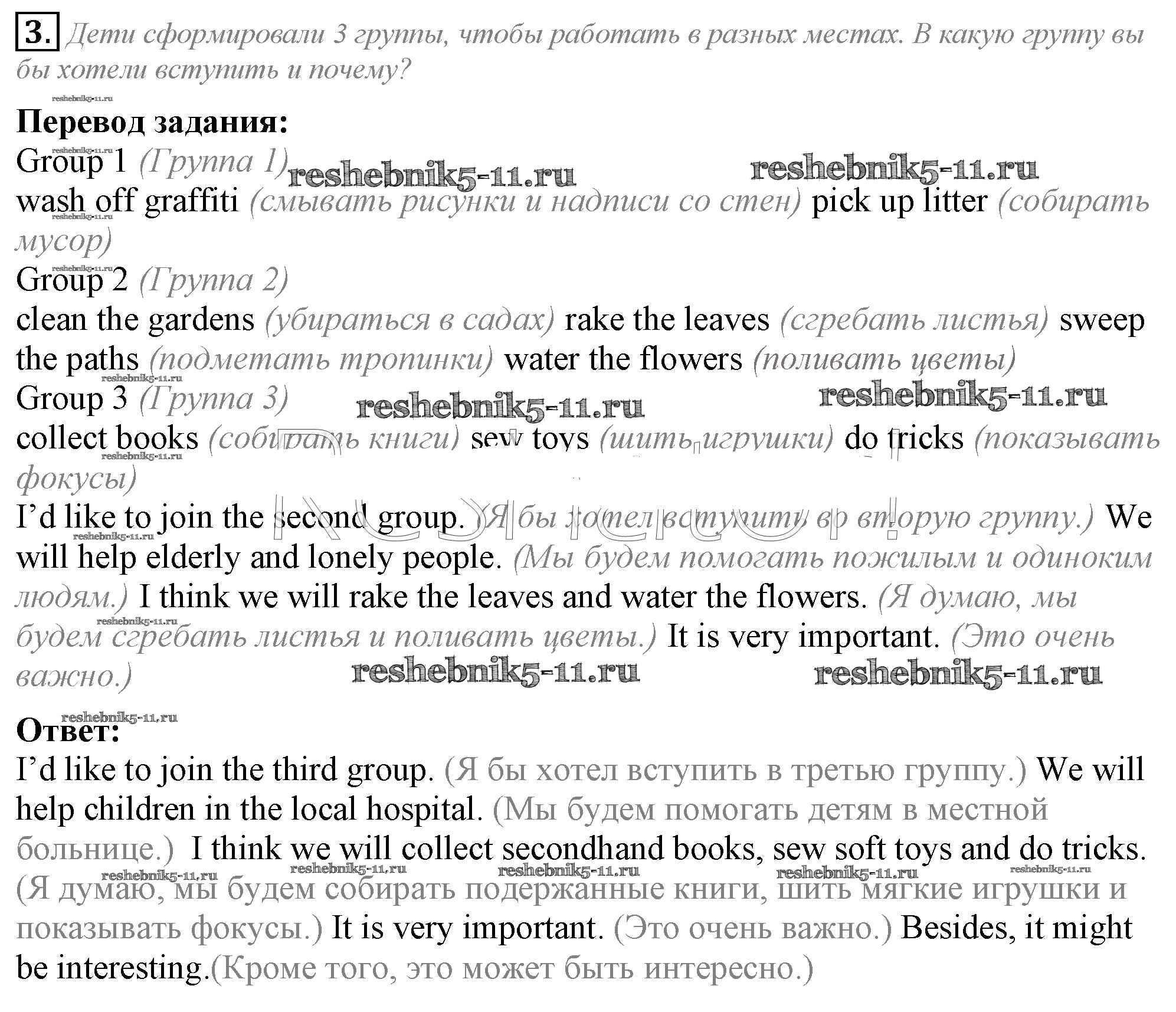 Готовая домашняя работа с ответами по Английскому языку за 5 класс Кузовлев, Лапа, Костина, Дуванова, Кузнецова Учебник УМК Просвещение 2015 ФГОС - Lesson 1. How do you help your neighbourhood? 3