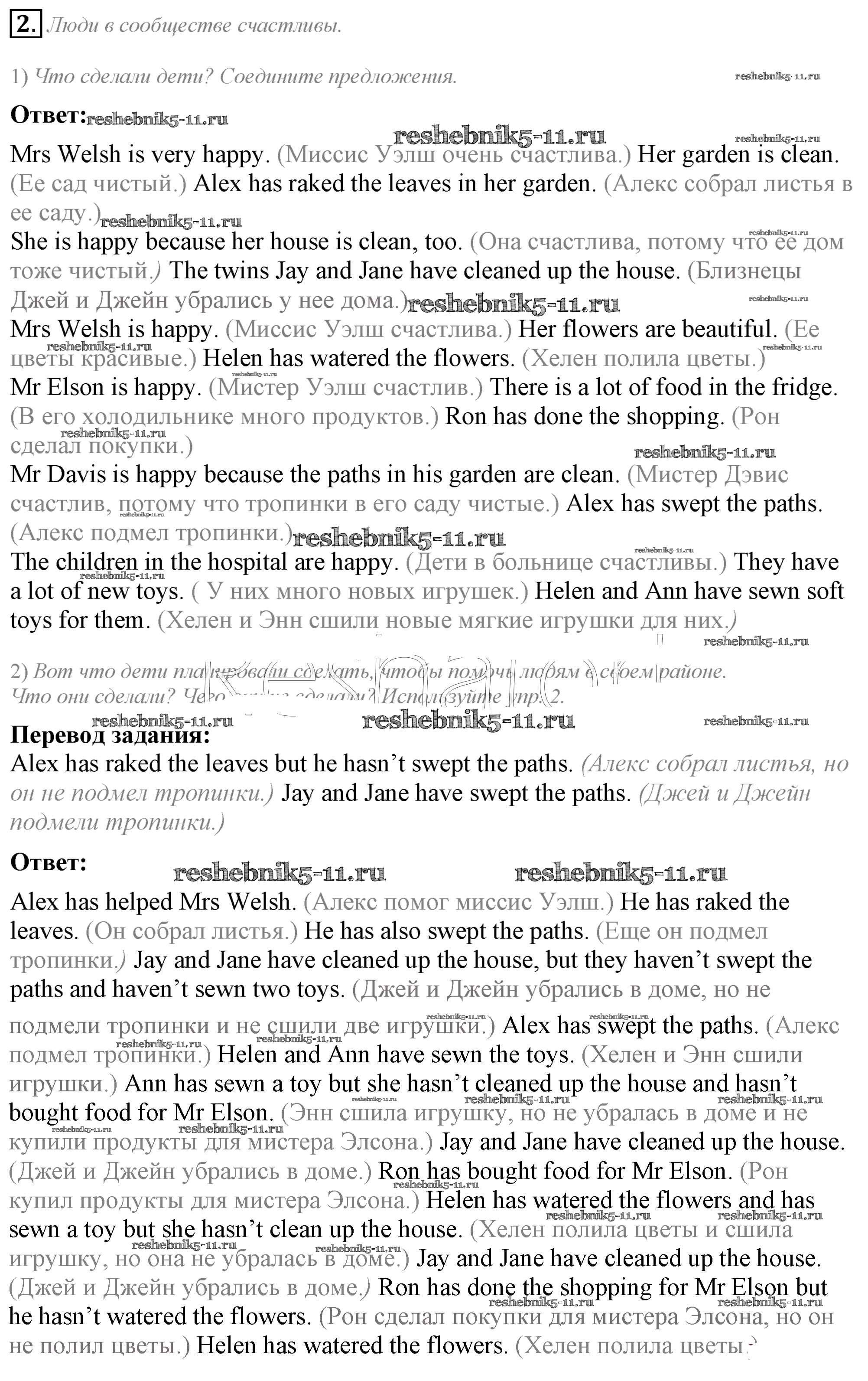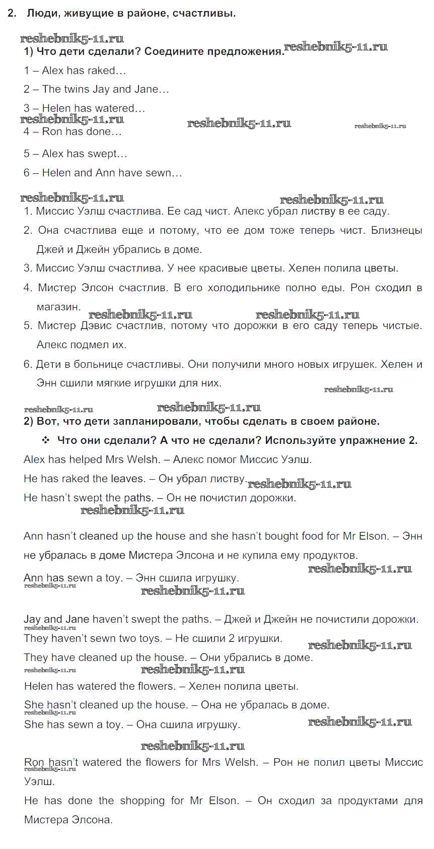 Готовая домашняя работа с ответами по Английскому языку за 5 класс Кузовлев, Лапа, Костина, Дуванова, Кузнецова Учебник УМК Просвещение 2015 ФГОС - Lesson 2. What have you done to help people? 2