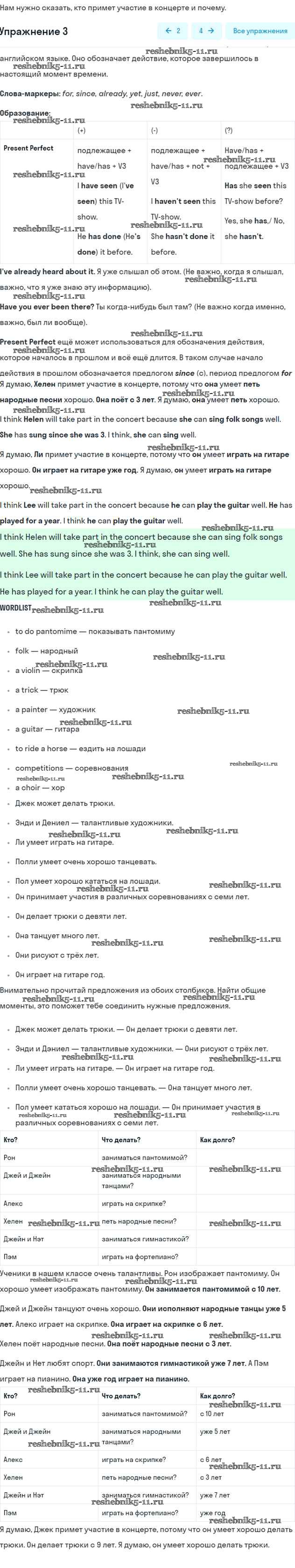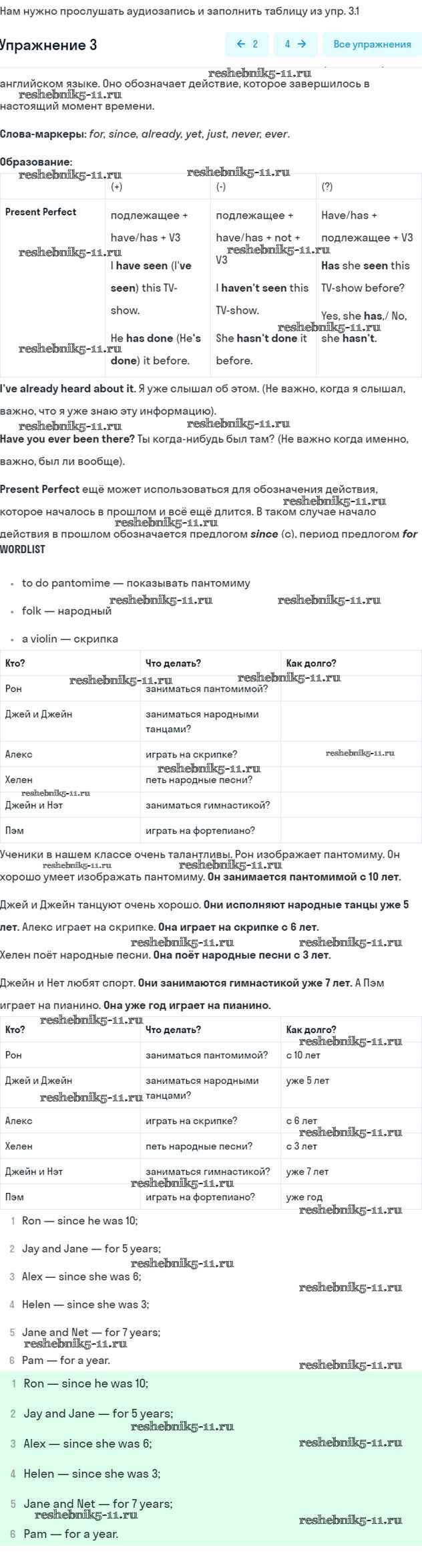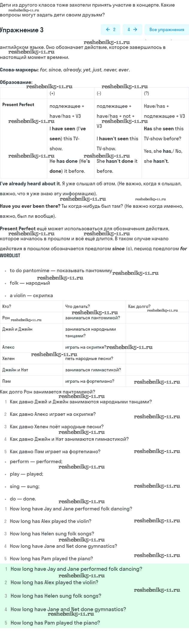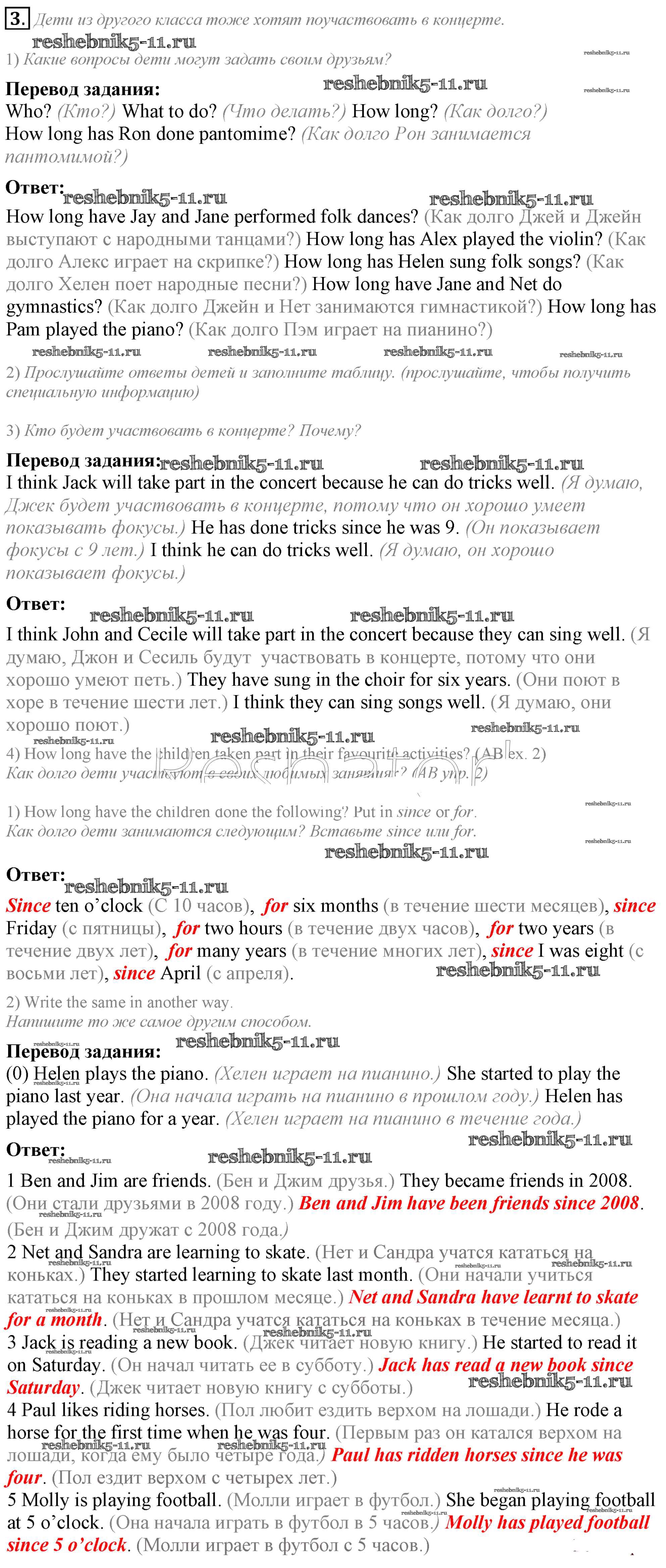 Готовая домашняя работа с ответами по Английскому языку за 5 класс Кузовлев, Лапа, Костина, Дуванова, Кузнецова Учебник УМК Просвещение 2015 ФГОС - Lesson 3. How long have you played the violin? 3