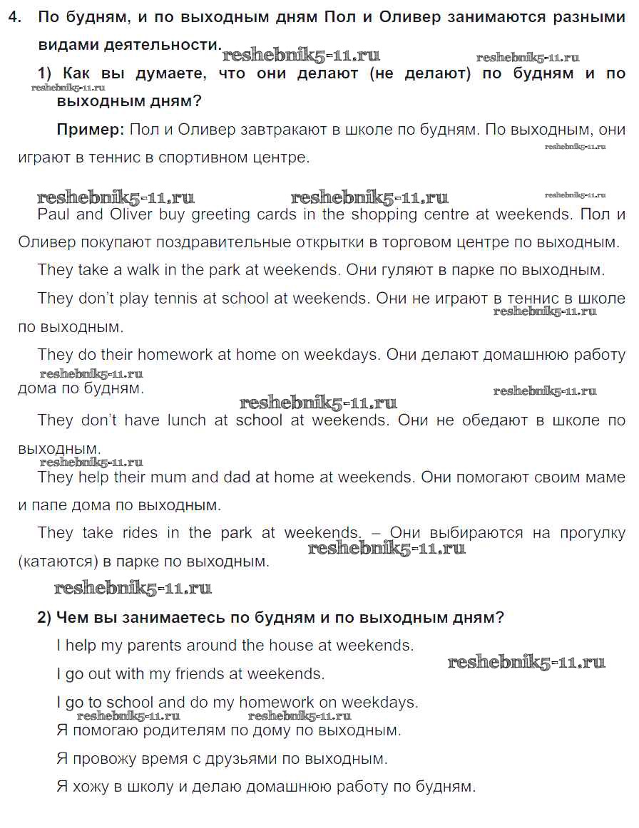 Готовая домашняя работа с ответами по Английскому языку за 5 класс Кузовлев, Лапа, Костина, Дуванова, Кузнецова Учебник УМК Просвещение 2015 ФГОС - Lesson 1. We like Wales! 4