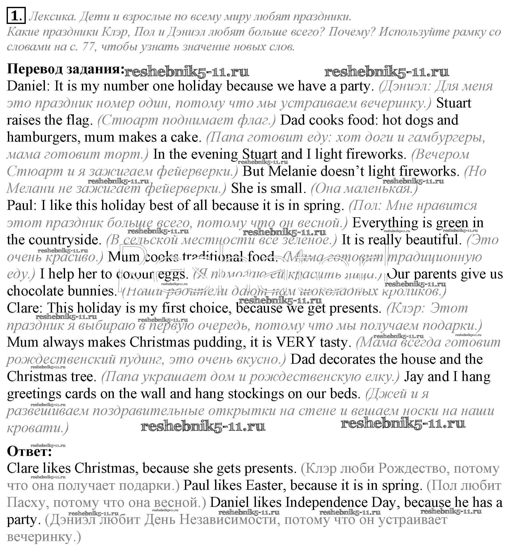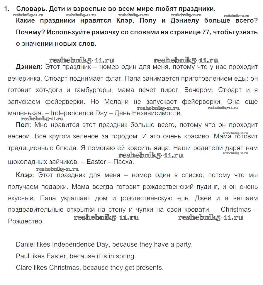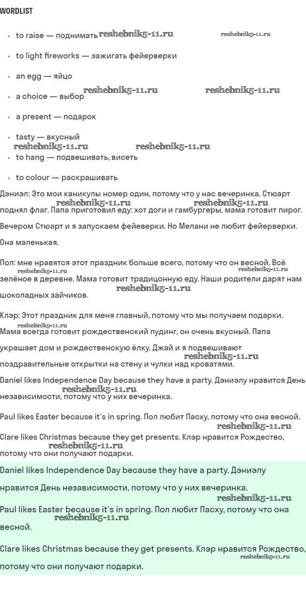 Готовая домашняя работа с ответами по Английскому языку за 5 класс Кузовлев, Лапа, Костина, Дуванова, Кузнецова Учебник УМК Просвещение 2015 ФГОС - Lesson 1. What is your favourite holiday? 1