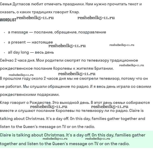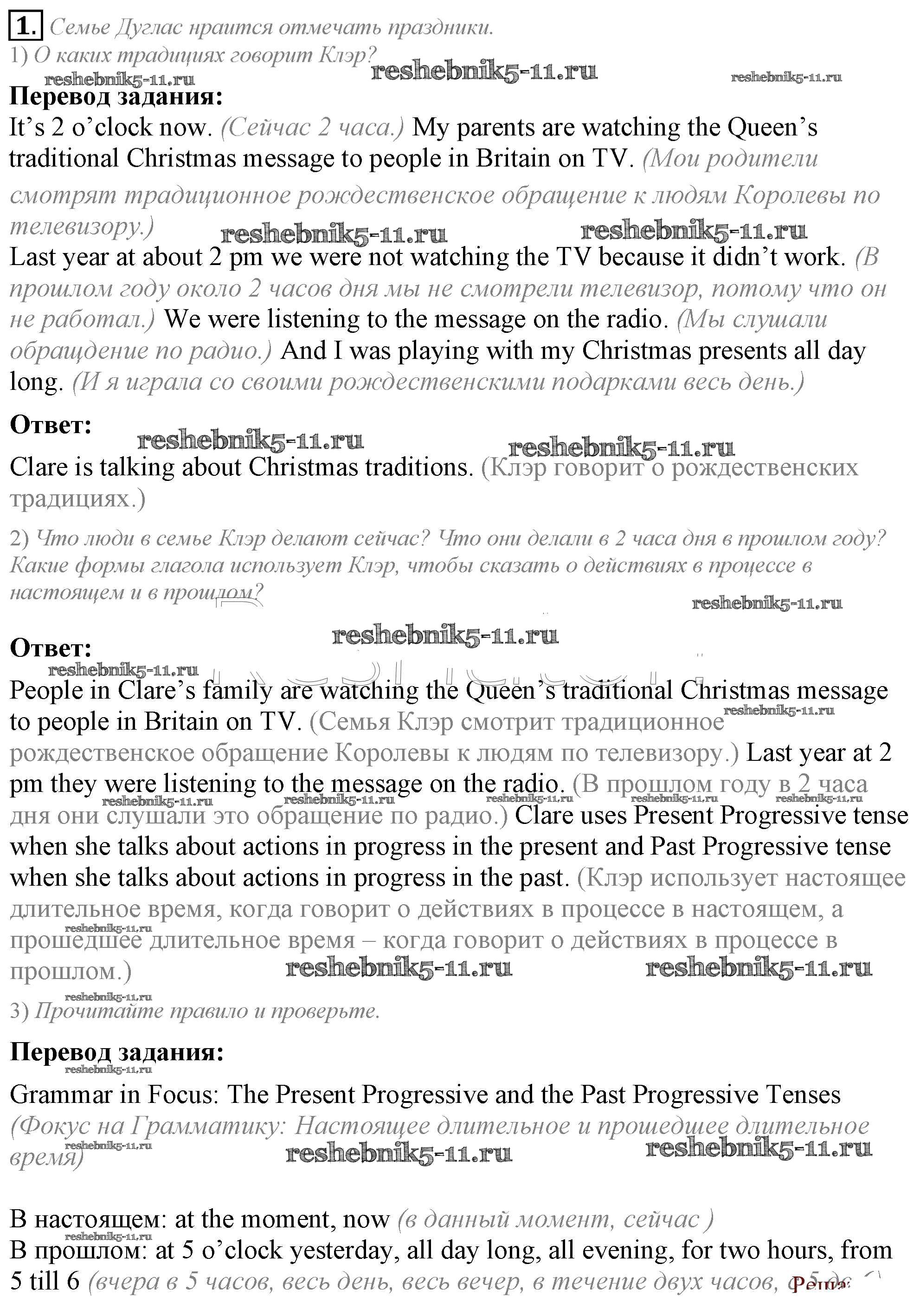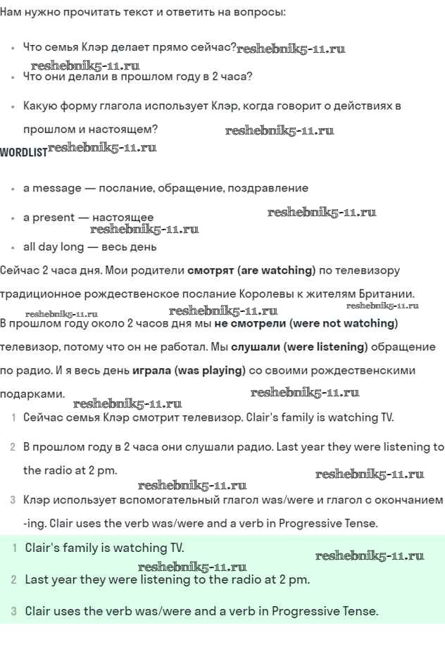 Готовая домашняя работа с ответами по Английскому языку за 5 класс Кузовлев, Лапа, Костина, Дуванова, Кузнецова Учебник УМК Просвещение 2015 ФГОС - Lesson 2. I was decorating the Christmas tree for two hours 1