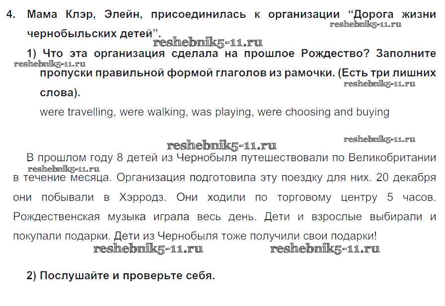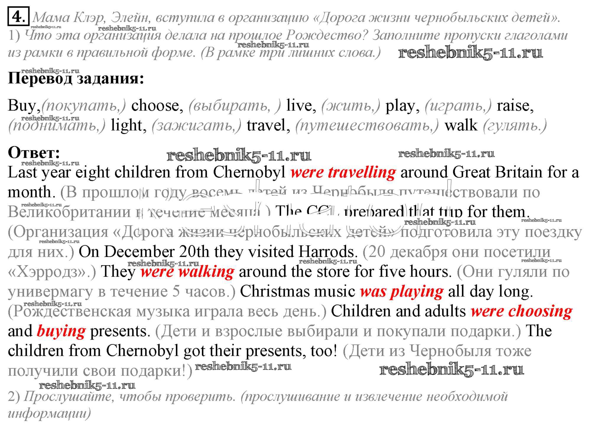 Готовая домашняя работа с ответами по Английскому языку за 5 класс Кузовлев, Лапа, Костина, Дуванова, Кузнецова Учебник УМК Просвещение 2015 ФГОС - Lesson 2. I was decorating the Christmas tree for two hours 4