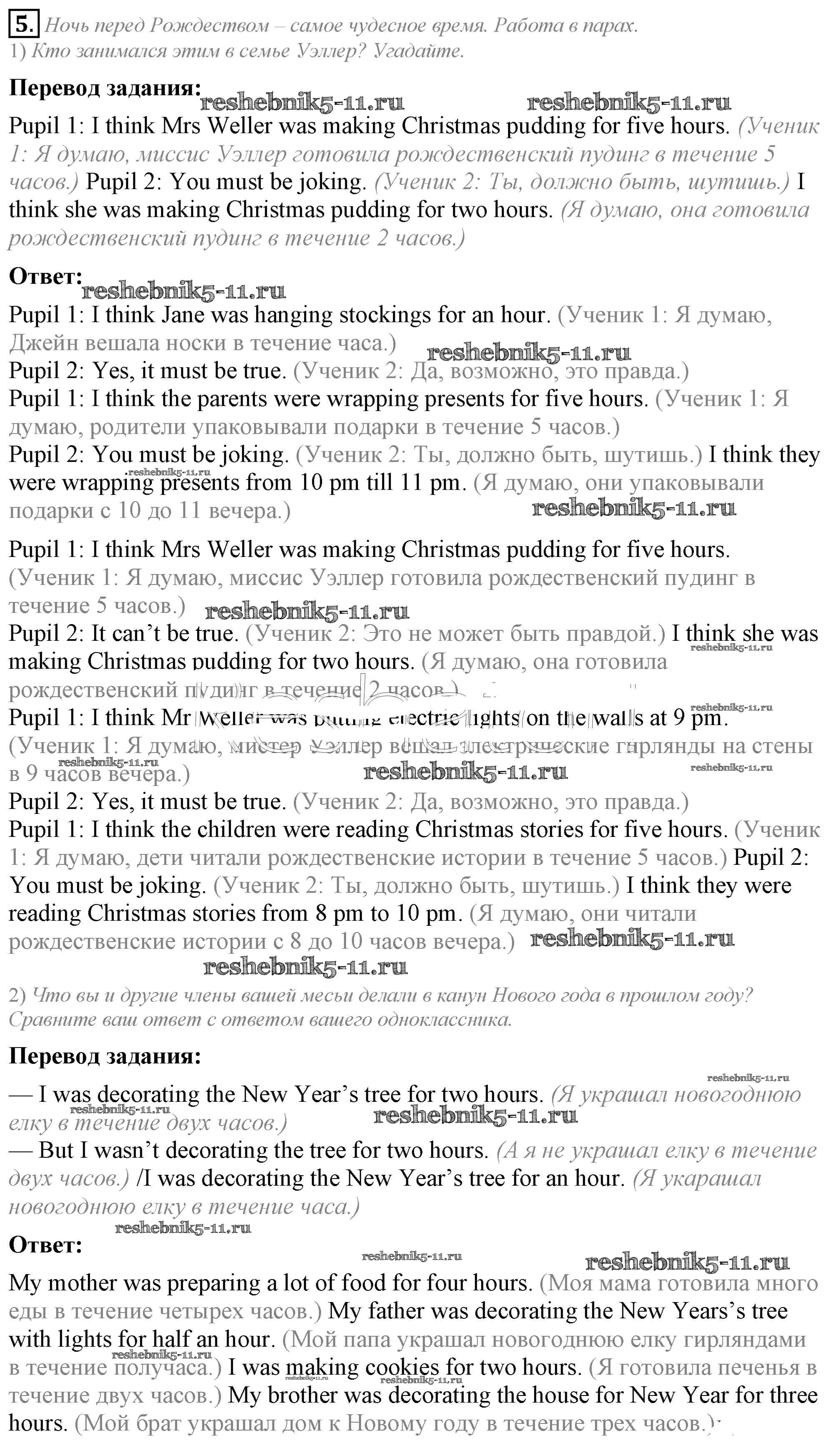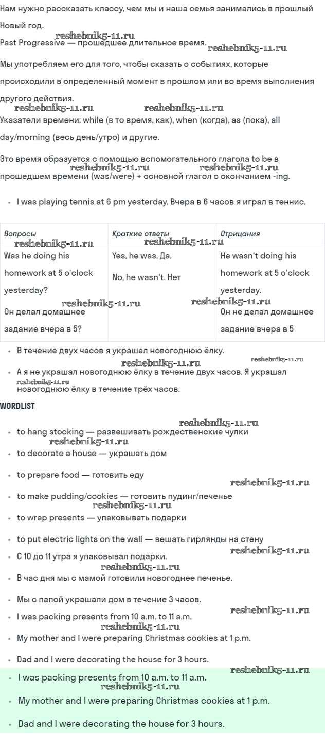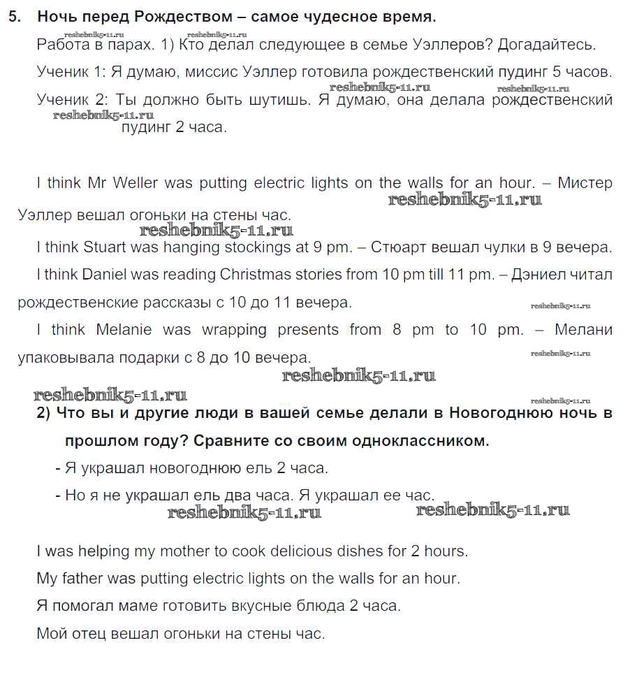 Готовая домашняя работа с ответами по Английскому языку за 5 класс Кузовлев, Лапа, Костина, Дуванова, Кузнецова Учебник УМК Просвещение 2015 ФГОС - Lesson 2. I was decorating the Christmas tree for two hours 5