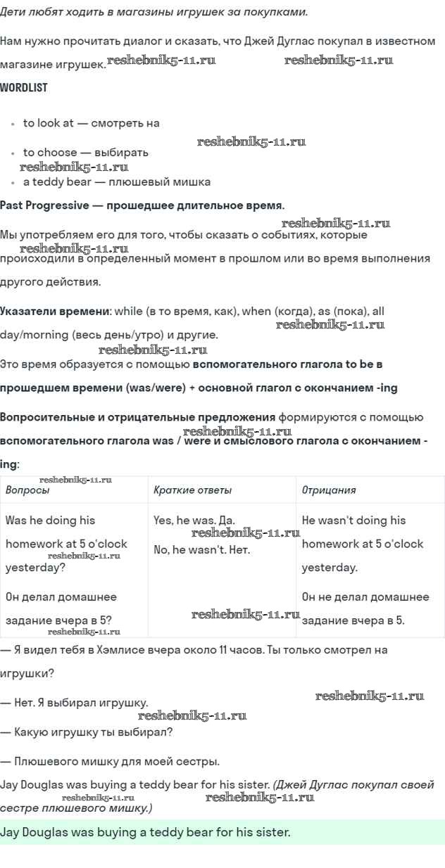 Готовая домашняя работа с ответами по Английскому языку за 5 класс Кузовлев, Лапа, Костина, Дуванова, Кузнецова Учебник УМК Просвещение 2015 ФГОС - Lesson 3. What were you doing at 5 pm yesterday? 1