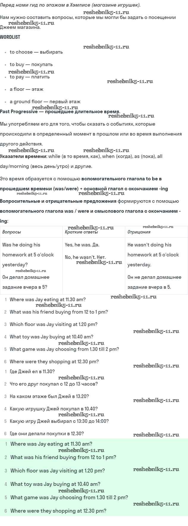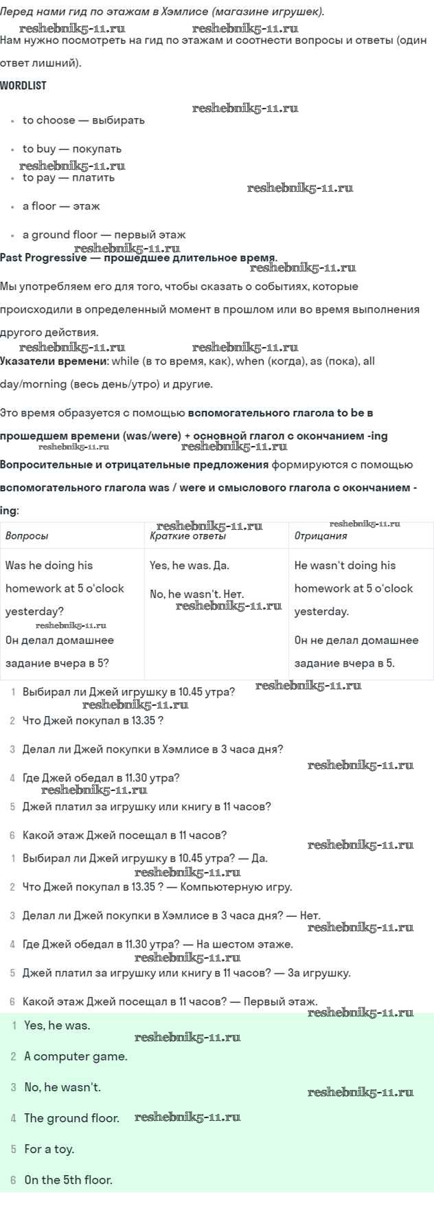 Готовая домашняя работа с ответами по Английскому языку за 5 класс Кузовлев, Лапа, Костина, Дуванова, Кузнецова Учебник УМК Просвещение 2015 ФГОС - Lesson 3. What were you doing at 5 pm yesterday? 2