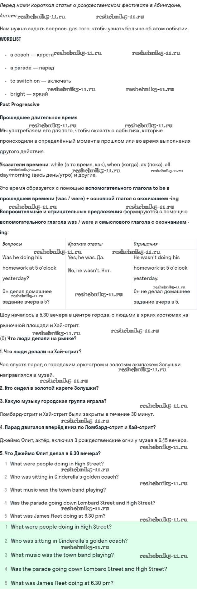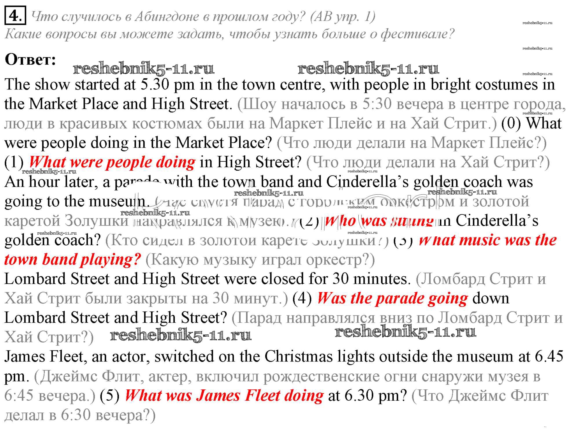 Готовая домашняя работа с ответами по Английскому языку за 5 класс Кузовлев, Лапа, Костина, Дуванова, Кузнецова Учебник УМК Просвещение 2015 ФГОС - Lesson 3. What were you doing at 5 pm yesterday? 4