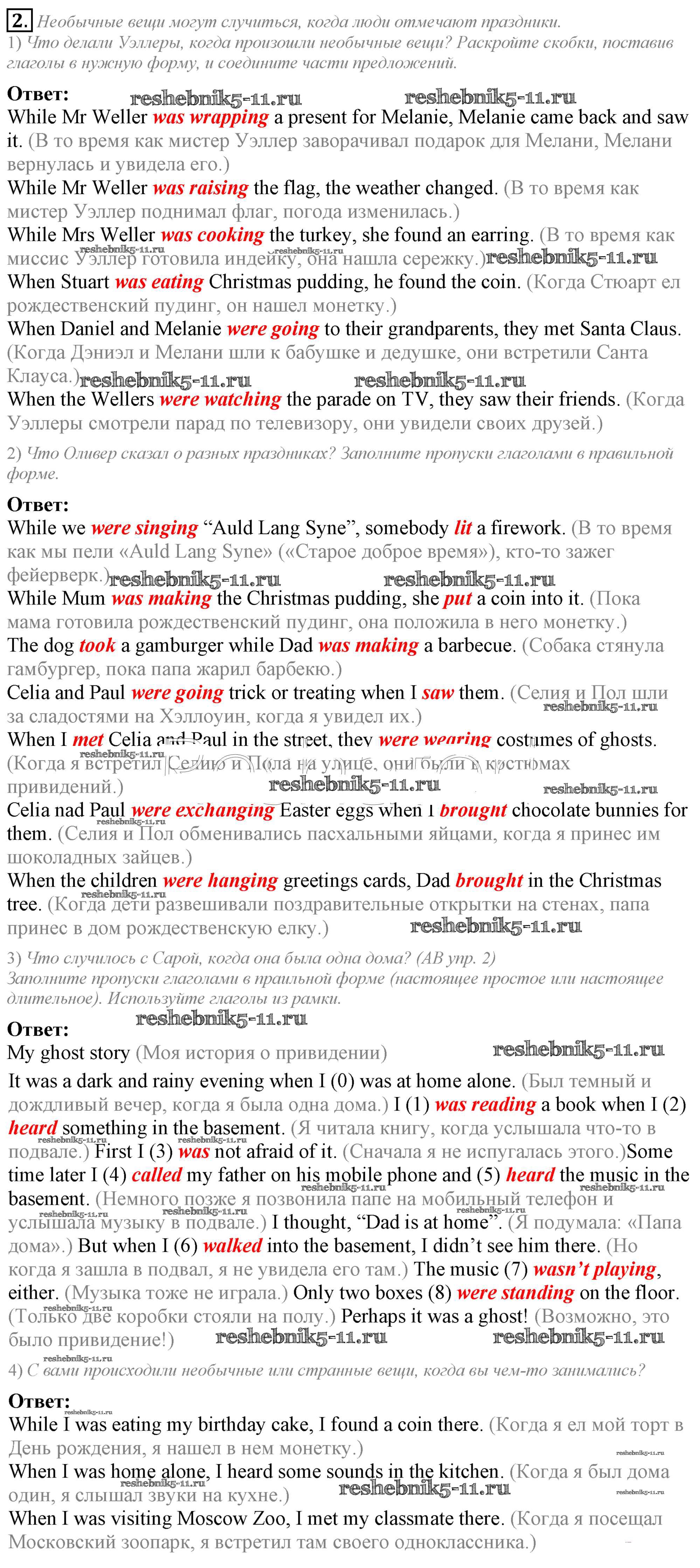Готовая домашняя работа с ответами по Английскому языку за 5 класс Кузовлев, Лапа, Костина, Дуванова, Кузнецова Учебник УМК Просвещение 2015 ФГОС - Lesson 4. While we were celebrating… 2